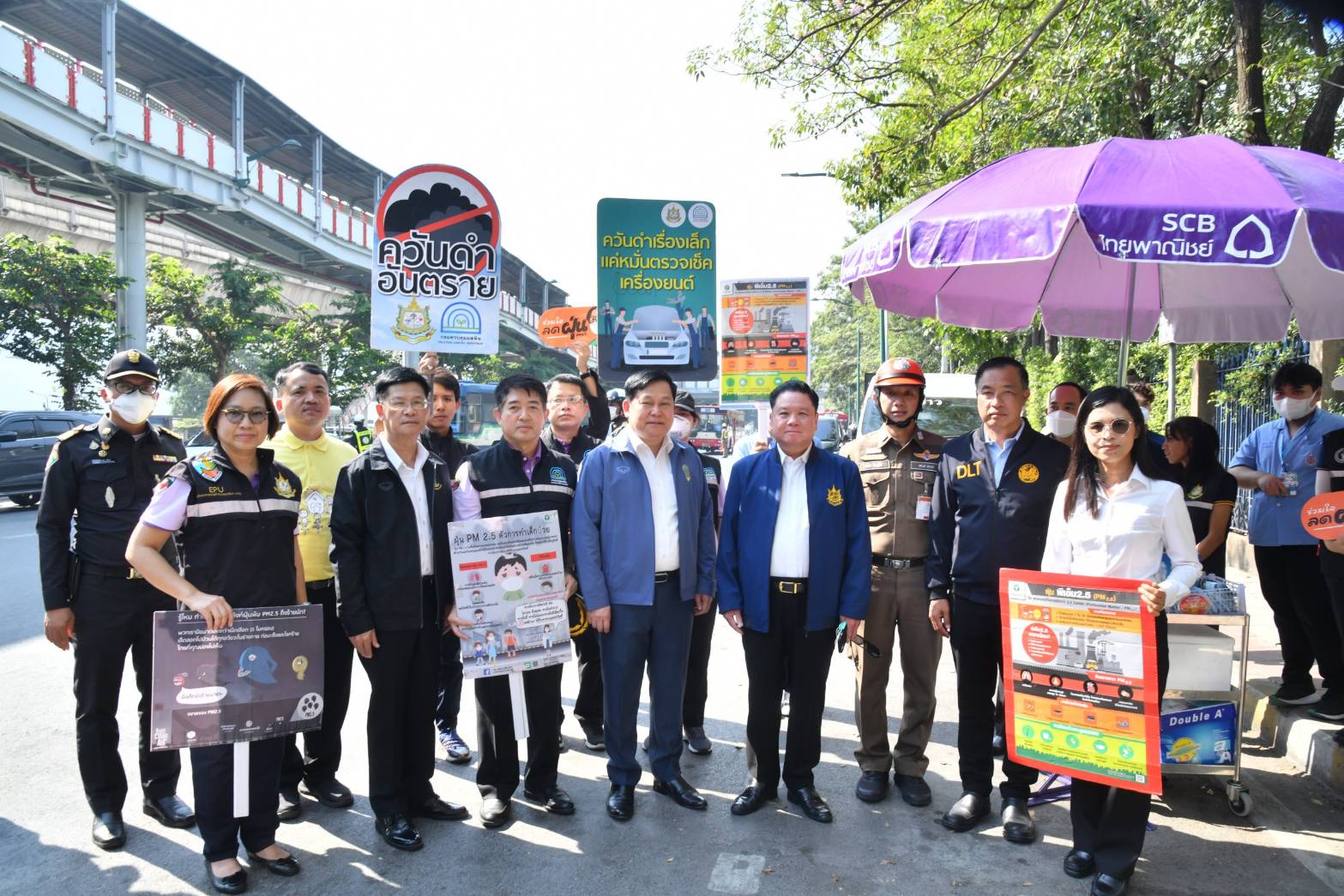 สำหรับการตรวจสอบรถปล่อยควันดำในพื้นที่กรุงเทพมหานคร เป็นการบูรณาการทำงานร่วมกันระหว่าง กรุงเทพมหานคร กรมควบคุมมลพิษ กรมการขนส่งทางบก กองบังคับการตำรวจจราจร เป็นหนึ่งในการดำเนินงานตามมาตรการลดฝุ่น PM2.5 365 วัน ของกรุงเทพมหานคร โดยดำเนินการตรวจสอบ ตรวจจับ และห้ามใช้รถยนต์ที่มีควันดำตามเส้นทางจราจรในพื้นที่กรุงเทพมหานคร โดยมีการตรวจเป็นประจำทุกวัน ซึ่งในวันนี้ รองปลัดฯ สมบูรณ์ และ เลขาฯ รัฐมนตรี นพดล ได้ลงพื้นที่ตรวจเยี่ยมการปฏิบัติงานพร้อมให้กำลังใจเจ้าหน้าที่ และรณรงค์ประชาสัมพันธ์ข้อมูลผลกระทบจากการใช้รถยนต์ควันดำแก่ประชาชน พร้อมขอความร่วมมือตรวจสอบสภาพรถยนต์และดูแลให้อยู่ในสภาพดีเป็นประจำ เพื่อลดการปล่อยฝุ่น PM2.5 การเผาชีวมวลของยานยนต์จากภาคการจราจร อีกทั้งกรุงเทพมหานคร ได้ร่วมกับ กระทรวงทรัพยากรธรรมชาติและสิ่งแวดล้อม กระทรวงคมนาคม กระทรวงพลังงาน และภาคีเครือข่าย จัดแคมเปญ รถคันนี้ #ลดฝุ่น เชิญชวนประชาชนร่วมเป็นส่วนสำคัญในการลดการปล่อยฝุ่น PM2.5 จากภาคการจราจร โดยการใช้น้ำมัน Euro5 และหมั่นดูแลบำรุงรักษาเครื่องยนต์ การตรวจสอบสภาพรถยนต์ เปลี่ยนไส้กรอง เปลี่ยนถ่ายน้ำมันเครื่องตามระยะเวลาที่กำหนด พร้อมรับโปรโมชัน ณ สถานีบริการน้ำมันและศูนย์บริการรถยนต์ที่ร่วมรายการ ซึ่งจะมีโปรโมชันส่วนลดในการดูแลบำรุงรักษาเครื่องยนต์สูงสุดถึง 55% อาทิ ส่วนลดราคาน้ำมัน น้ำมันเครื่อง อะไหล่ ตรวจเช็คสภาพรถฟรี เปลี่ยนถ่ายน้ำมันเครื่องฟรี พร้อมของสมนาคุณมากมาย ตั้งแต่วันนี้จนถึงวันที่ 29 กุมภาพันธ์ 2567 สามารถดูโปรโมชันที่ร่วมแคมเปญได้ที่ https://drive.google.com/file/d/16PCsZC-0oGlOQmLoFkUCmjF88fs2A4qN/view หรือ Facebook เพจ “กรุงเทพมหานคร”