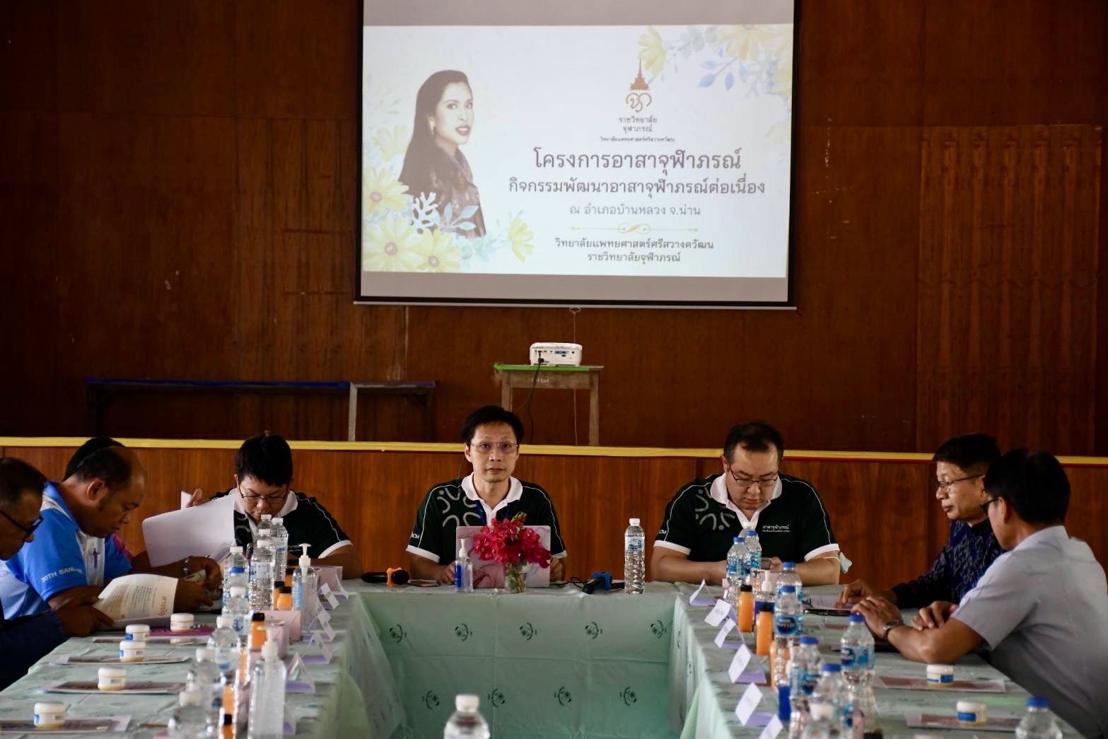 จากนั้นในช่วงบ่าย ทางวิทยาลัยฯ ได้ร่วมประชุมรายงานสรุปผลการดำเนินโครงการอาสาจุฬาภรณ์ พร้อมร่วมหารือเรื่องการพัฒนาโครงการเพื่อบูรณาการการส่งเสริมสุขภาพประชาชนของอำเภอบ้านหลวงในระยะยาว ร่วมกับหน่วยงานด้านสาธารณสุข และหน่วยบริหารงานส่วนท้องถิ่น เช่น นายอำเภอบ้านหลวง หน่วยงานสาธารณสุขอำเภอบ้านหลวง โรงพยาบาลบ้านหลวง องค์การบริหารส่วนตำบลบ้านหลวง กำนัน ผู้ใหญ่บ้าน และ รพ.สต.บ้านหลวง เป็นต้น