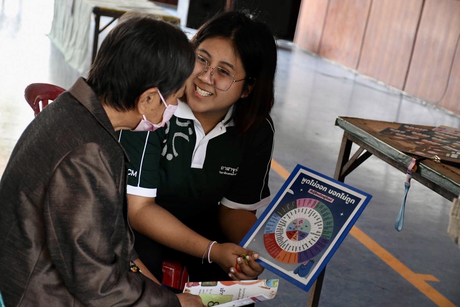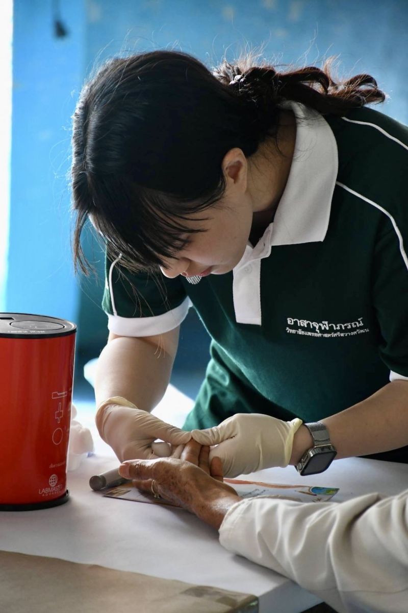 สำหรับการออกหน่วยแพทย์วิทยาลัยแพทยศาสตร์ศรีสวางควัฒนในวันนี้ ช่วงเช้าเป็นกิจกรรมสำรวจความเข้าใจ และบรรยายให้ความรู้เรื่องโรคติดต่อทางผิวหนัง โดยเฉพาะโรคติดเชื้อราที่ผิวหนัง โดยอาจารย์แพทย์โรคผิวหนังและนักศึกษาจากหลักสูตรวิทยาศาสตรมหาบัณฑิต สาขาวิชาตจวิทยา จากนั้น ทีมแพทย์และอาสาจุฬาภรณ์ได้ให้บริการตรวจสุขภาพเบื้องต้น ทั้งตรวจวัดความดัน ตรวจวัดระดับน้ำตาลในเลือด ตรวจตาบอดสี ตรวจโรคผิวหนัง ตรวจวัดพัฒนาการของเด็ก ตรวจโรคกระดูกและข้อ ตรวจประเมินสุขภาพจิต และตรวจโรคทั่วไป ให้แก่ประชาชนที่เข้ารับบริการ