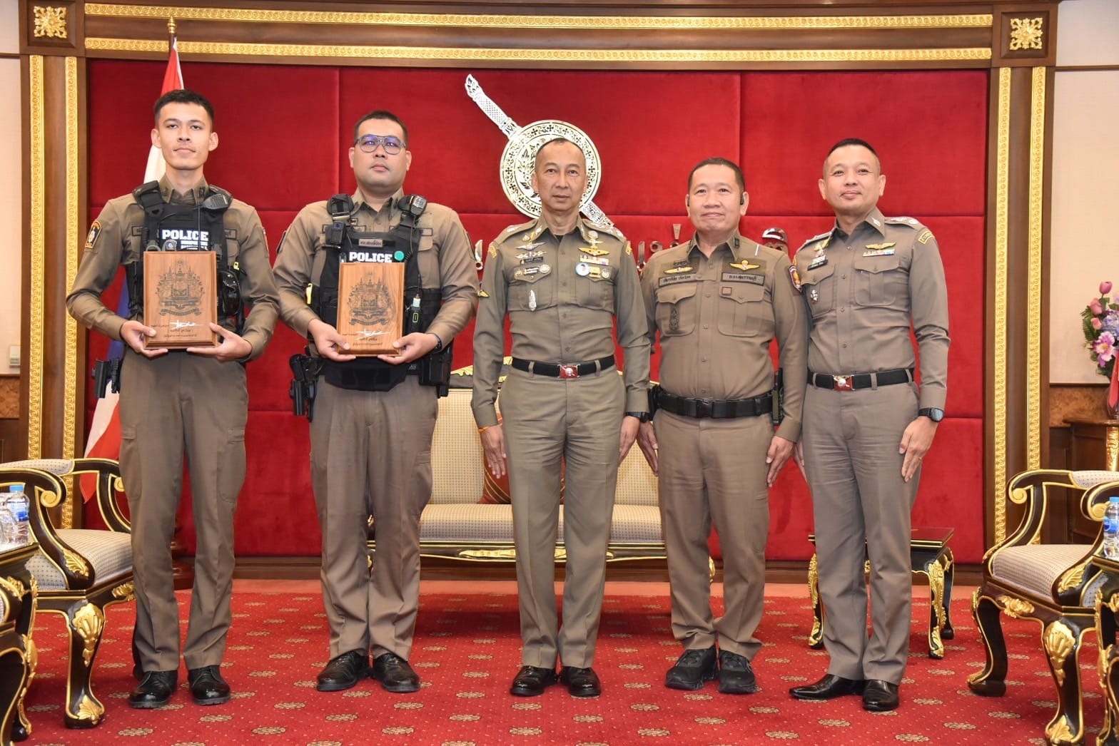 วันนี้ (24 ม.ค.67) เมื่อเวลา 11.45 น. พล.ต.อ.ต่อศักดิ์ สุขวิมล ผู้บัญชาการตำรวจแห่งชาติ มอบรางวัลแก่ข้าราชการตำรวจ สภ.สองพี่น้อง จ.สุพรรณบุรี 2 นาย ที่กระโดดน้ำช่วยชีวิตชายที่กำลังจะจมน้ำ นำส่งโรงพยาบาลจนอาการปลอดภัย ได้แก่ จ.ส.ต.ธรรมรัตน์ ศรีอำพัน ผบ.หมู่ (ป) สภ.สองพี่น้อง และ ส.ต.ต.ณัชพล จันนาคา ผบ.หมู่ (ผู้ช่วยพนักงานสอบสวน) สภ.สองพี่น้อง ณ ห้องพรหมนอก อาคาร 1 สำนักงานตำรวจแห่งชาติ เพื่อเป็นขวัญกำลังใจและชื่นชมในการปฏิบัติหน้าที่ผู้พิทักษ์สันติราษฎร์อย่างแท้จริง