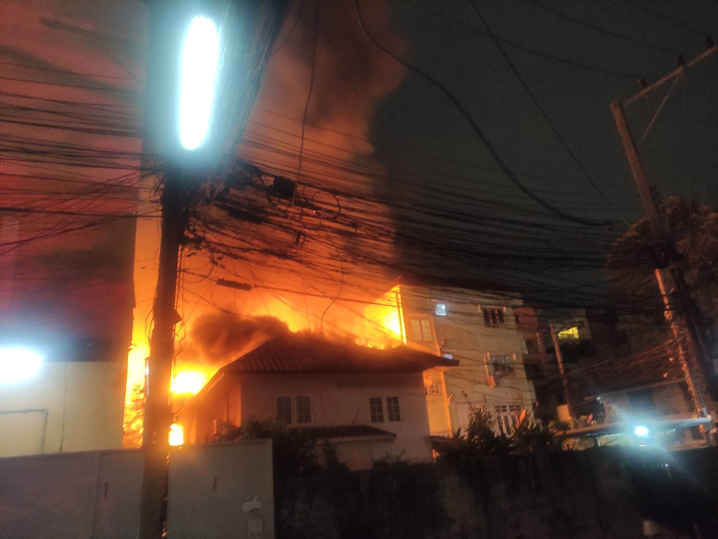 เวลา 04.22 น. เจ้าหน้าที่สถานีดับเพลิงและกู้ภัยพหลโยธินถึงที่เกิดเหตุเบื้องต้นเป็นตึกแถว 2 ชั้น เพลิงอยู่ระหว่างลุกไหม้