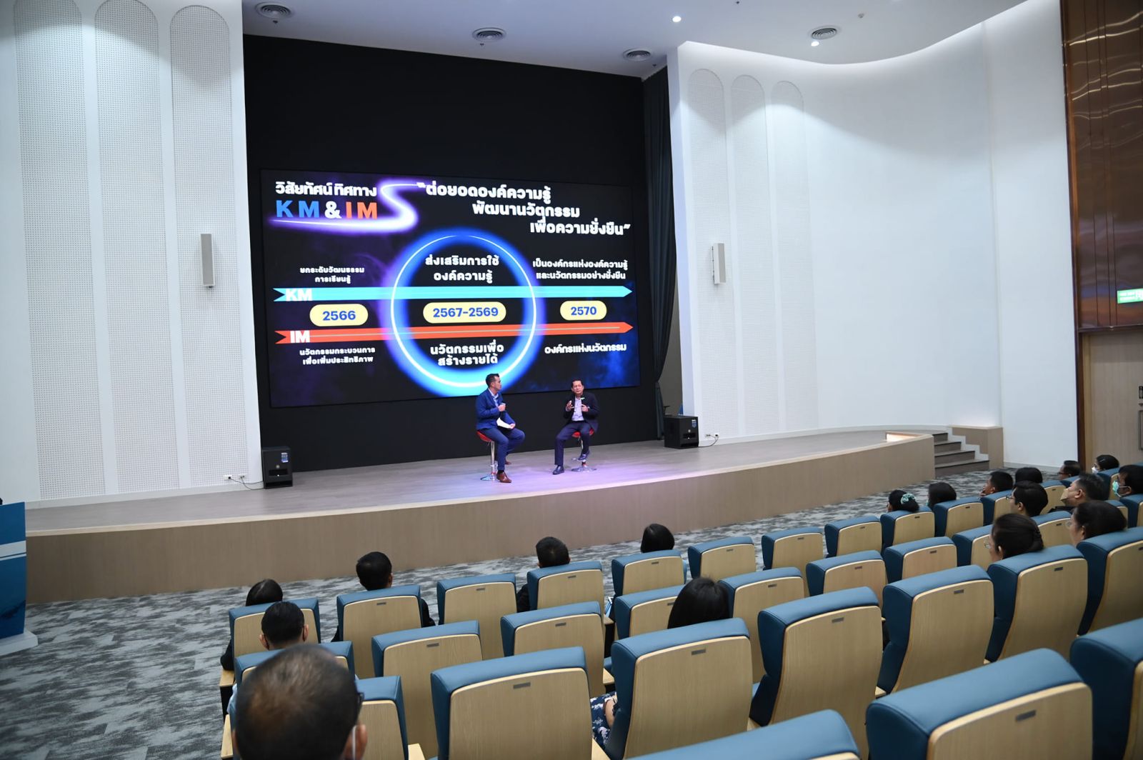นอกจากนี้ นางสาวฉวีวรรณ อุทัยพิบูลย์ รองผู้ว่าการ (แผนและพัฒนา) ในฐานะประธานคณะกรรมการ KM & IM Committee ได้ร่วมสื่อสารกิจกรรมและเป้าหมายด้านการจัดการความรู้ และนวัตกรรมของสายงาน ประจำปี 2567 โดยเป้าหมาย KM IM ปี 2567 คือ การสร้างวัฒนธรรมนำองค์ความรู้ไปใช้ในงานประจำ เพื่อพัฒนานวัตกรรมที่สร้างรายได้ให้กับองค์กร