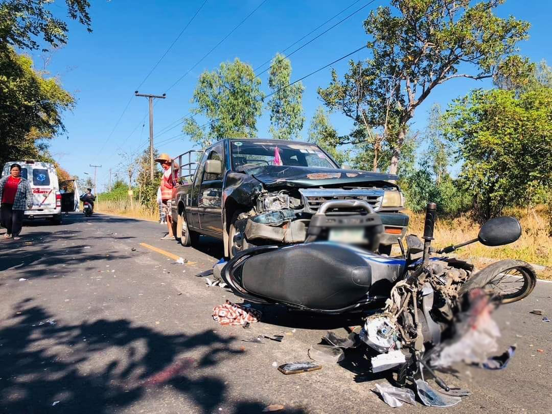 รถกระบะ ชนกับรถจักรยานยนต์กลางถนนบ้านนาใต้ มีผู้เสียชีวิต 2 คน จ.อุบลราชธานี