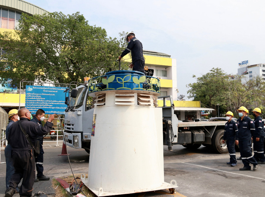 จากสถานการณ์มลพิษฝุ่นละอองขนาดเล็ก PM 2.5 ซึ่งทวีความรุนแรงและส่งผลกระทบต่อสุขภาพของพี่น้องประชาชน โดยเฉพาะอย่างยิ่ง ในพื้นที่เขตเมืองพื้นที่ชุมชนที่มีประชากรอาศัยอยู่เป็นจำนวนมาก ดังนั้น เพื่อให้การสนับสนุนการแก้ไขปัญหา และลดต้นเหตุการเกิดฝุ่นละอองขนาดเล็ก วันนี้ (3 กุมภาพันธ์ 2566) ศูนย์บรรเทาสาธารณภัยกองทัพเรือ จึงได้ดำเนินการติดตั้งเครื่องบำบัดฝุ่น PM 2.5 จำนวน 2 เครื่อง ที่กรมอู่ทหารเรือได้ดำเนินการจัดสร้างขึ้น บริเวณลานจอดรถฝั่งด้านหน้านันทอุทยานสโมสร กองบัญชาการกองทัพเรือ พื้นที่วังนันทอุทยาน ซึ่งเป็นพื้นที่ที่มีประชาชนมาใช้บริการและออกกำลังกายเป็นจำนวนมาก โดยในเบื้องต้นจะดำเนินการติดตั้งในพื้นที่กรุงเทพมหานคร จำนวน 13 เครื่อง