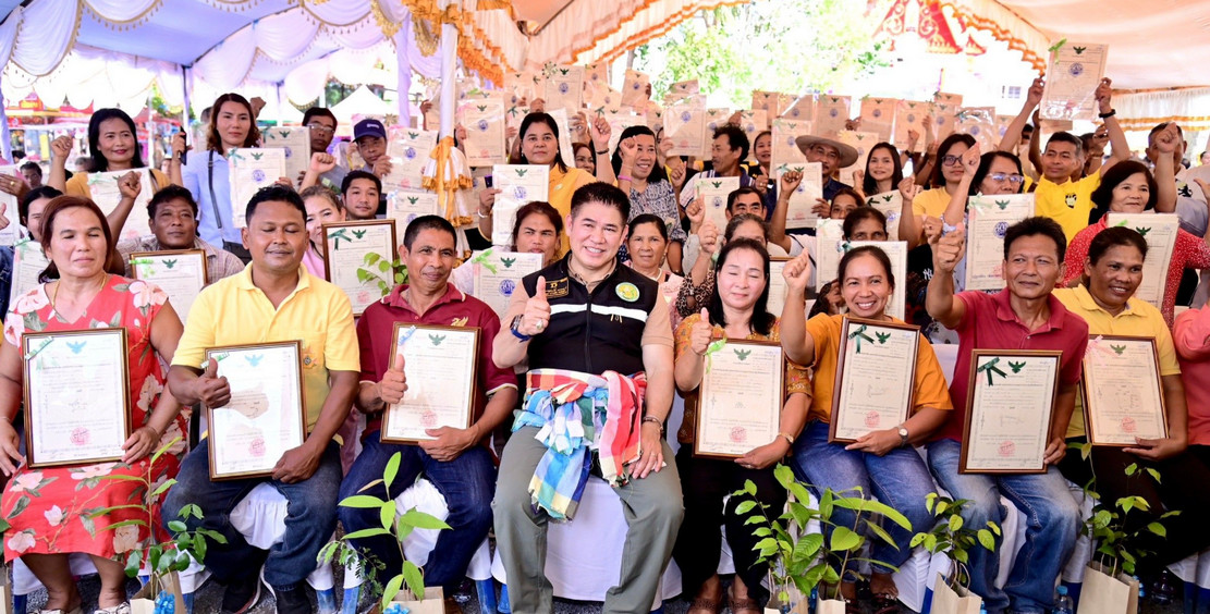 นอกจากนี้ รัฐมนตรีว่าการกระทรวงเกษตรและสหกรณ์ มอบโฉนดที่ดินเพื่อการเกษตร จำนวน 300 ราย 351 แปลง เนื้อที่ประมาณ 2,824 ไร่ ซึ่งจังหวัดนครศรีธรรมราชได้มีพระราชกฤษฎีกากำหนดให้เป็นเขตปฏิรูปที่ดิน เนื้อที่ทั้งหมดประมาณ 663,071 ไร่ เป็นพื้นที่เขตดำเนินการปฏิรูปที่ดินเนื้อที่ประมาณ 493,337 ไร่ ครอบคลุมพื้นที่ 19 อำเภอ
