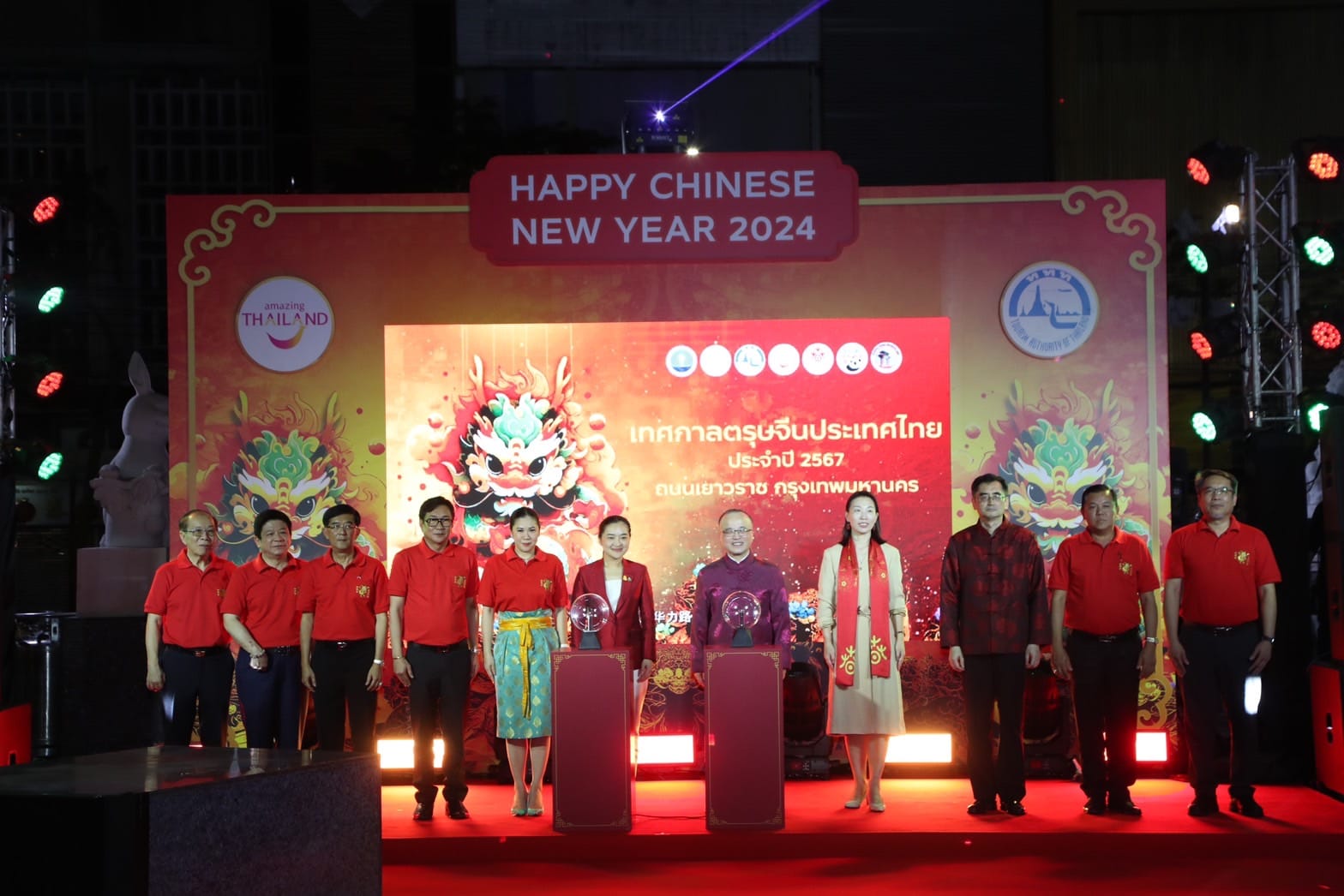 การท่องเที่ยวแห่งประเทศไทยร่วมกับพันธมิตร จัดงานตรุษจีนเยาวราช ประดับไฟพื้นที่บริเวณซุ้มประตูเฉลิมพระเกียรติ ถนนเยาวราช ภายใต้แนวคิด "เฉลิมฉลอง ปีทองแห่งความรุ่งเรือง" ตั้งแต่วันที่ 1 - 29 กุมภาพันธ์ 2567 พร้อมการจัดแสดง ภายใต้เรื่องราวแห่งความเชื่อความศรัทธาของคนไทยเชื้อสายจีน ในชื่อชุดการแสดง เทพเจ้าราชันย์มังกร บริเวณถนนเยาวราชตั้งแต่วันที่ 10-12 กุมภาพันธ์ 2567