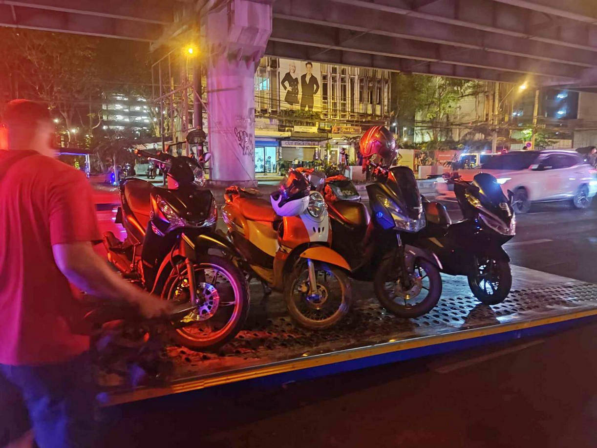 โดยที่เกิดเหตุบริเวณหน้าปากซอยเกียรติชัย พบรถนั่งส่วนบุคคล 2 คัน, รถกระบะ 1 คัน, รถแท็กซี่ 1 คัน และรถจักรยานยนต์ 5 คันเฉี่ยวชนกัน ตรวจสอบพบว่ามีผู้ได้รับบาดเจ็บรวม 6 ราย อาสากู้ภัย ม.ร่วมกตัญญูช่วยเหลือและนำส่ง รพ.เพชรเวช จำนวน 4 ราย ส่วนอีก 2 รายปฐมพยาบาลในจุดเกิดเหตุ ส่วนสาเหตุนั้นอยู่ระหว่างการสอบสวนของเจ้าหน้าที่ตำรวจ สน.มักกะสัน