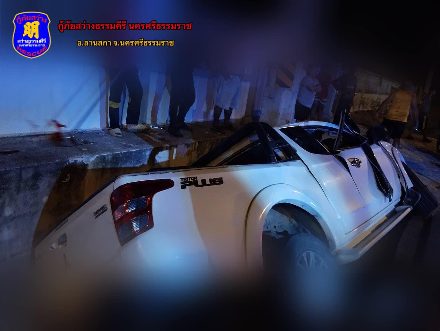รถกระบะเสียหลักลงร่องน้ำข้างทาง ริมถนนสายลานสกา - จันดี มีบาดเจ็บ 4 และเสียชีวิต 4 ราย จ.นครศรีธรรมราช