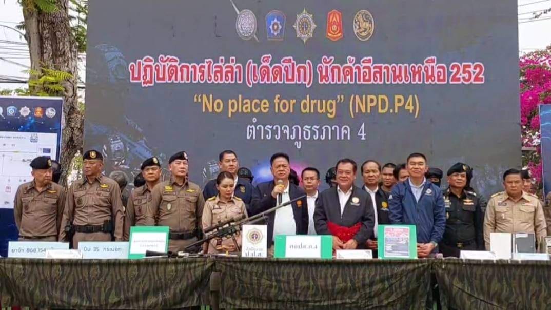 ตำรวจภูธรภาค 4 เปิดผลปฏิบัติการไล่ล่า เด็ดปีกนักค้าอีสานเหนือ 252 ปูพรมจับกุมนักค้ายาเสพติดในพื้นที่ ยึดทรัพย์รวมกว่า 180 ล้านบาท