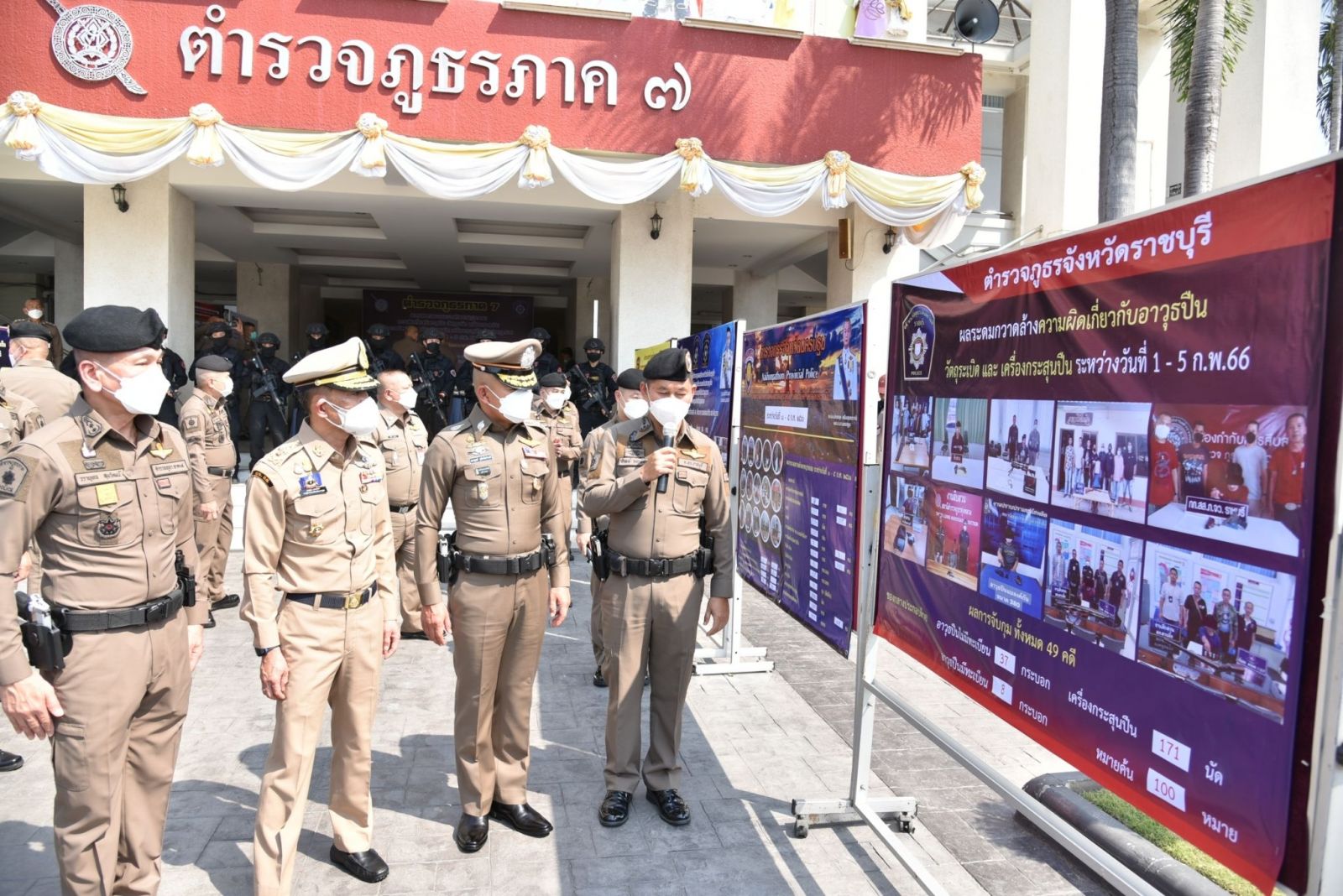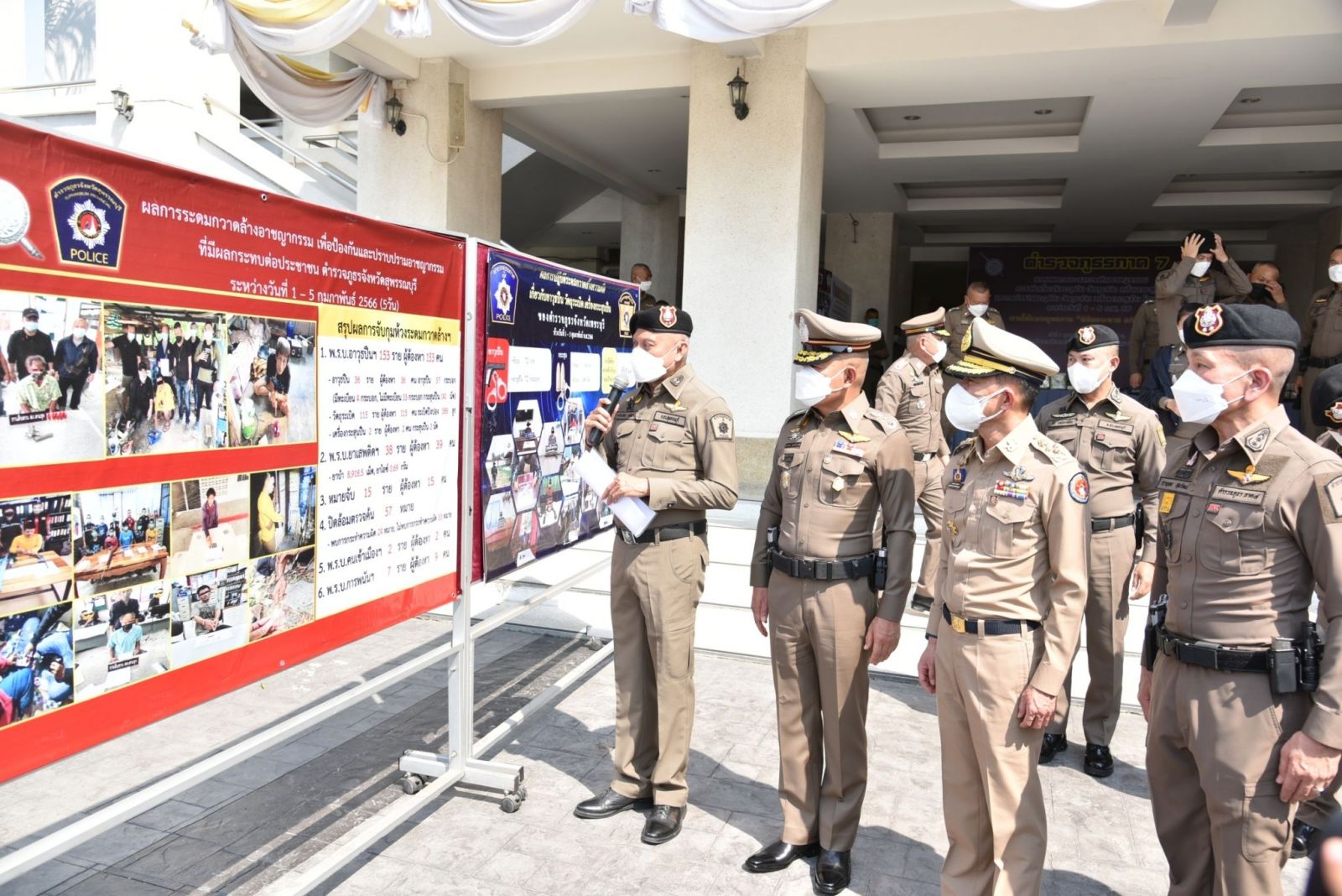 ได้ร่วมกันแถลงผลการระดมกวาดล้างอาชญากรรม ภายใต้แผนยุทธการ “พิชิตคนพาล อภิบาลคนดี” ระหว่างวันที่ 1 – 5 ก.พ.66 (5 วัน) เน้นเป้าหมายความผิดเกี่ยวกับอาวุธปืน วัตถุระเบิด เครื่องกระสุนปืน และการจำหน่ายอาวุธปืน วัตถุระเบิด เครื่องกระสุนปืนโดยผิดกฎหมาย มีผลการจับกุมผู้ต้องหาพร้อมของกลาง ดังนี้