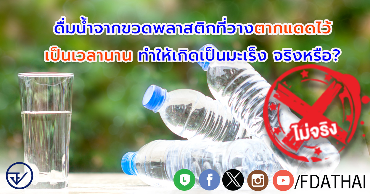 เนื่องจากมีการแชร์ข้อความผ่านสื่อออนไลน์ต่าง ๆ ว่าห้ามดื่มน้ำจากขวดน้ำดื่มพลาสติกที่เก็บในรถยนต์ที่จอดตากแดด หรือที่ถูกวางตากแดดไว้เป็นระยะเวลานาน เพราะความร้อนจะทำให้สารเคมีอันตรายที่อยู่ในขวดพลาสติก เช่น สารไดออกซิน (Dioxin) สารบีสฟีนอล เอ (Bisphenol A หรือ BPA) และสารทาเลต (Phthalate) ละลายออกมาปนเปื้อนในน้ำดื่มเป็นอันตรายต่อผู้บริโภค ส่งผลต่อความผิดปกติของพันธุกรรม ทำให้เกิดเป็นโรคมะเร็งได้ จะจริงหรือไม่ วันนี้มาติดตามกัน
