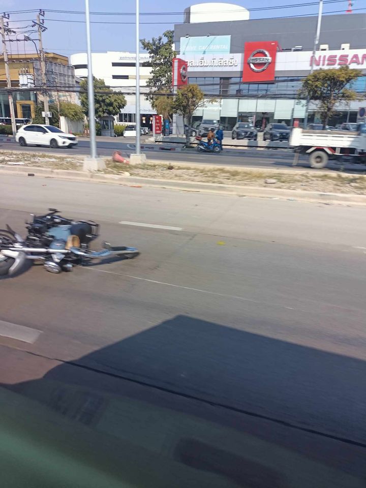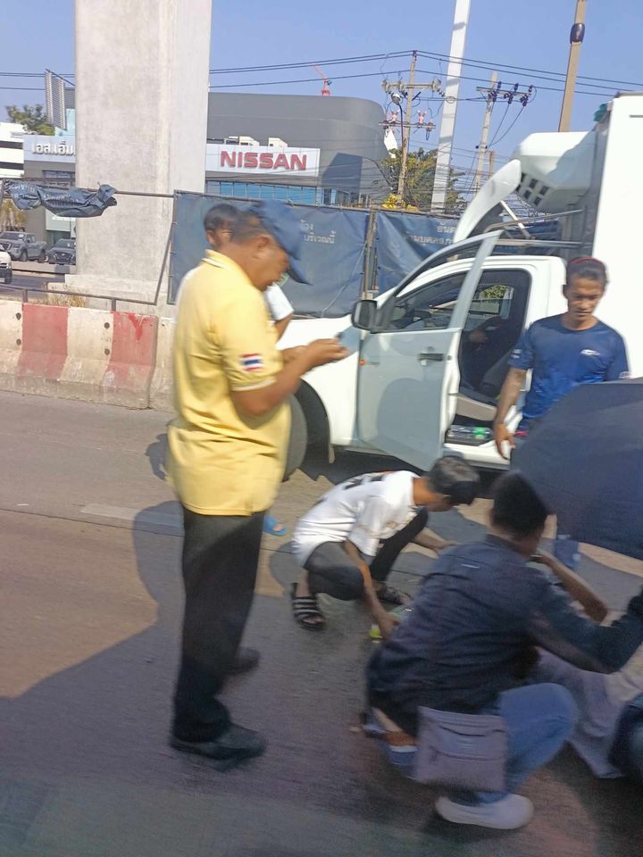 ก่อนถึงซอยศรีนครินทร์ 20 ประมาณ 100 เมตร รถจยย. ไม่ทราบคู่กรณี บาดเจ็บชาย 1ราย กีดขวางจราจร 2 เลนขวา ผ่านได้เลนซ้าย