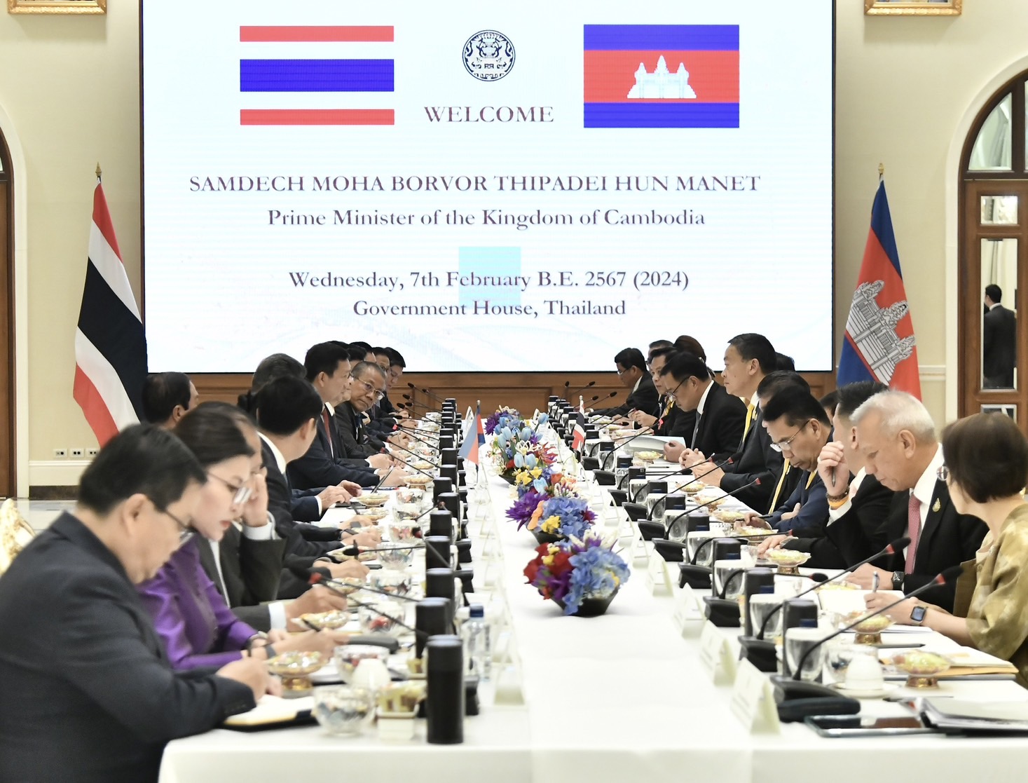 วันนี้ (7 กุมภาพันธ์ 2567) เวลา 11.10 น. ณ ตึกสันติไมตรี (หลังใน) ทำเนียบรัฐบาล นายเศรษฐา ทวีสิน นายกรัฐมนตรีและรัฐมนตรีว่าการกระทรวงการคลัง และสมเด็จมหาบวรธิบดี ฮุน มาแนต (Samdech Moha Borvor Thipadei Hun Manet) นายกรัฐมนตรีราชอาณาจักรกัมพูชา เป็นสักขีพยานในพิธีลงนามและแลกเปลี่ยนบันทึกความเข้าใจ 5 ฉบับ ดังนี้