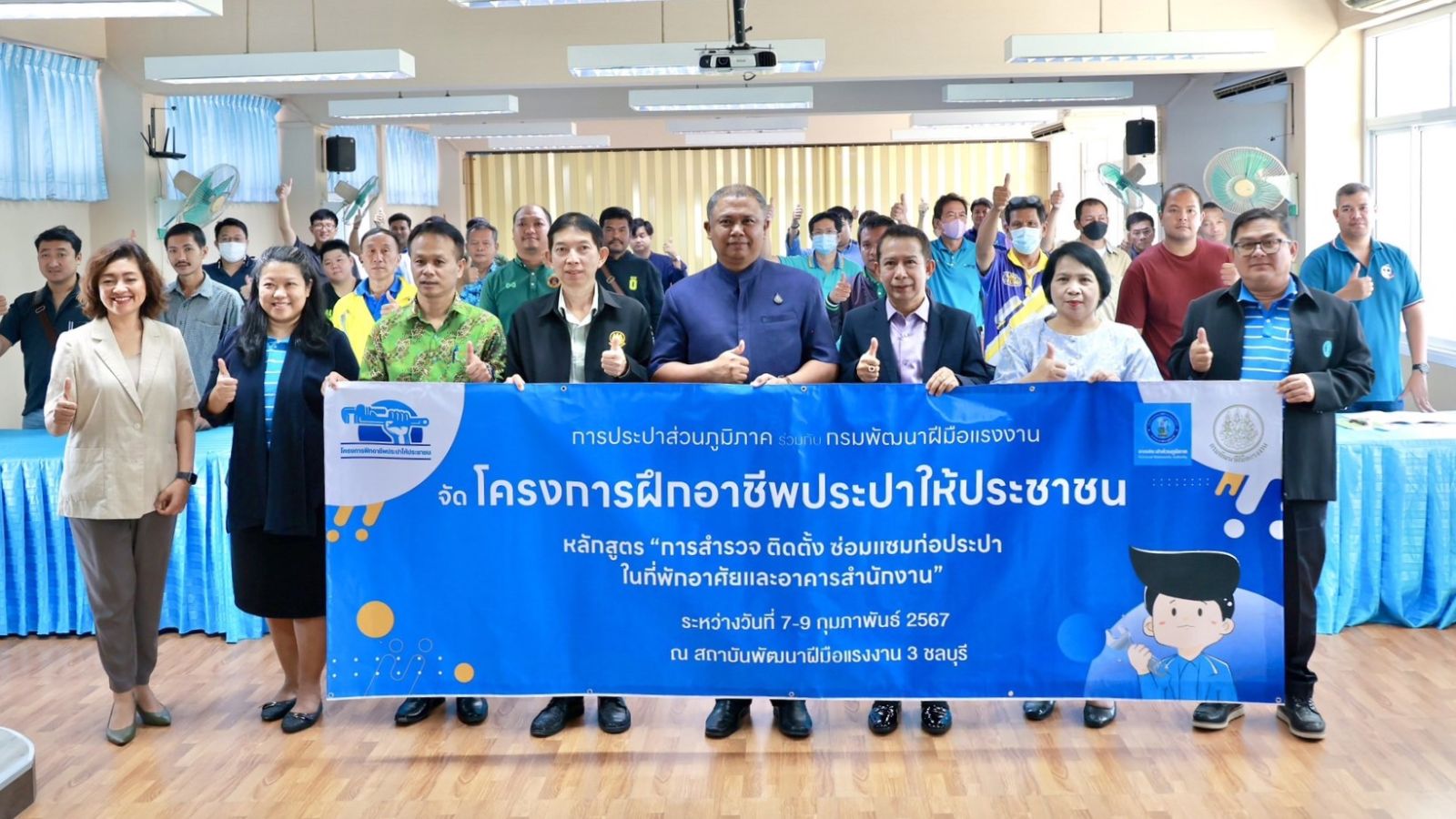 การประปาส่วนภูมิภาค (กปภ.) ผสานความร่วมมือกรมพัฒนาฝีมือแรงงาน (กพร.) เปิดตัวโครงการฝึกอาชีพประปาให้ประชาชน ในหลักสูตร “การสำรวจ ติดตั้ง ซ่อมแซมท่อประปาในที่พักอาศัยและอาคารสำนักงาน” เปิดอบรมฟรีพร้อมรับวุฒิบัตรรับรอง ลุยต่อเนื่องรุ่นที่ 2 จ.ชลบุรี ระหว่างวันที่ 7 – 9 กุมภาพันธ์ 2567 ณ สถาบันพัฒนาฝีมือแรงงาน 3 ชลบุรี