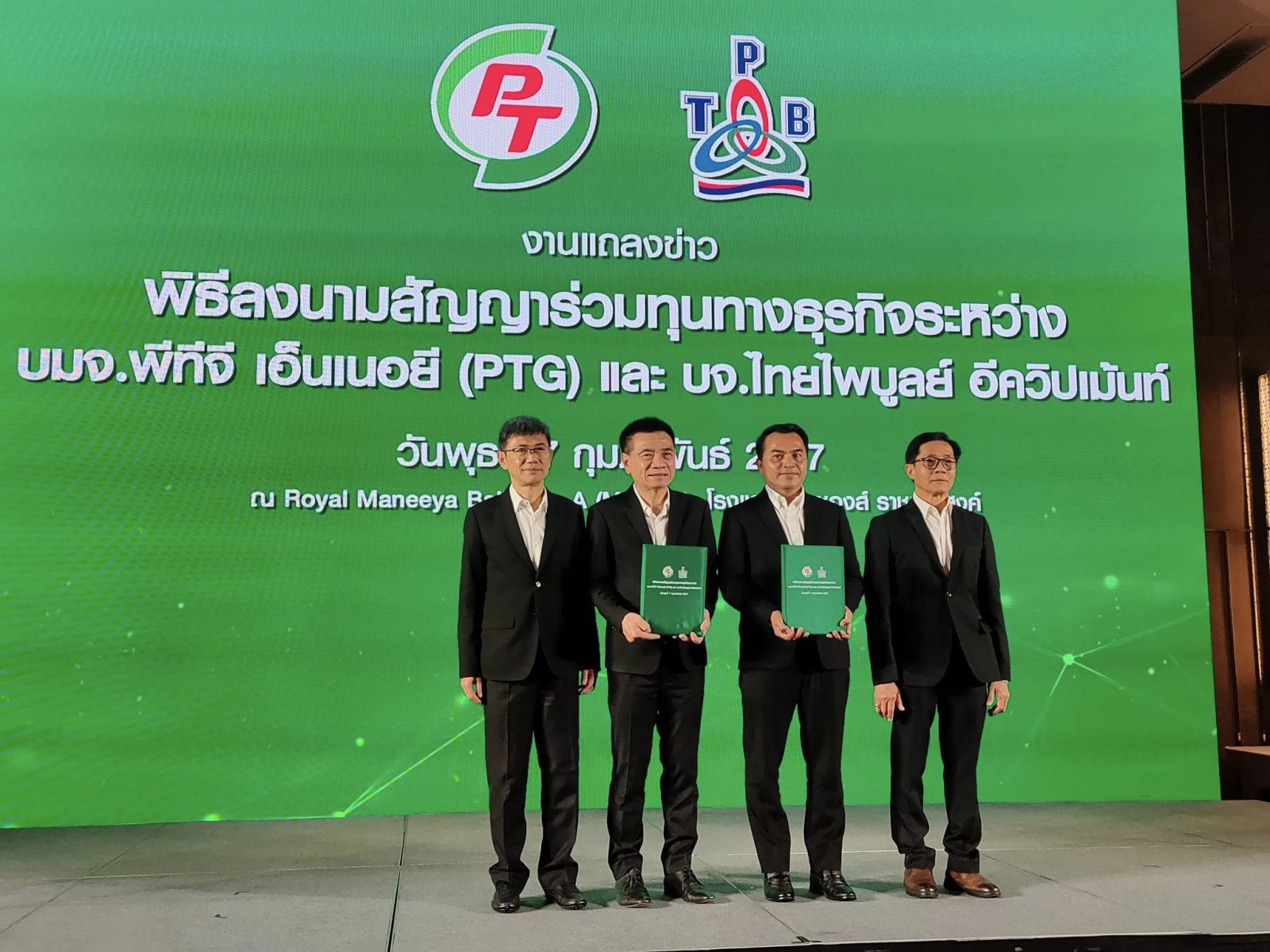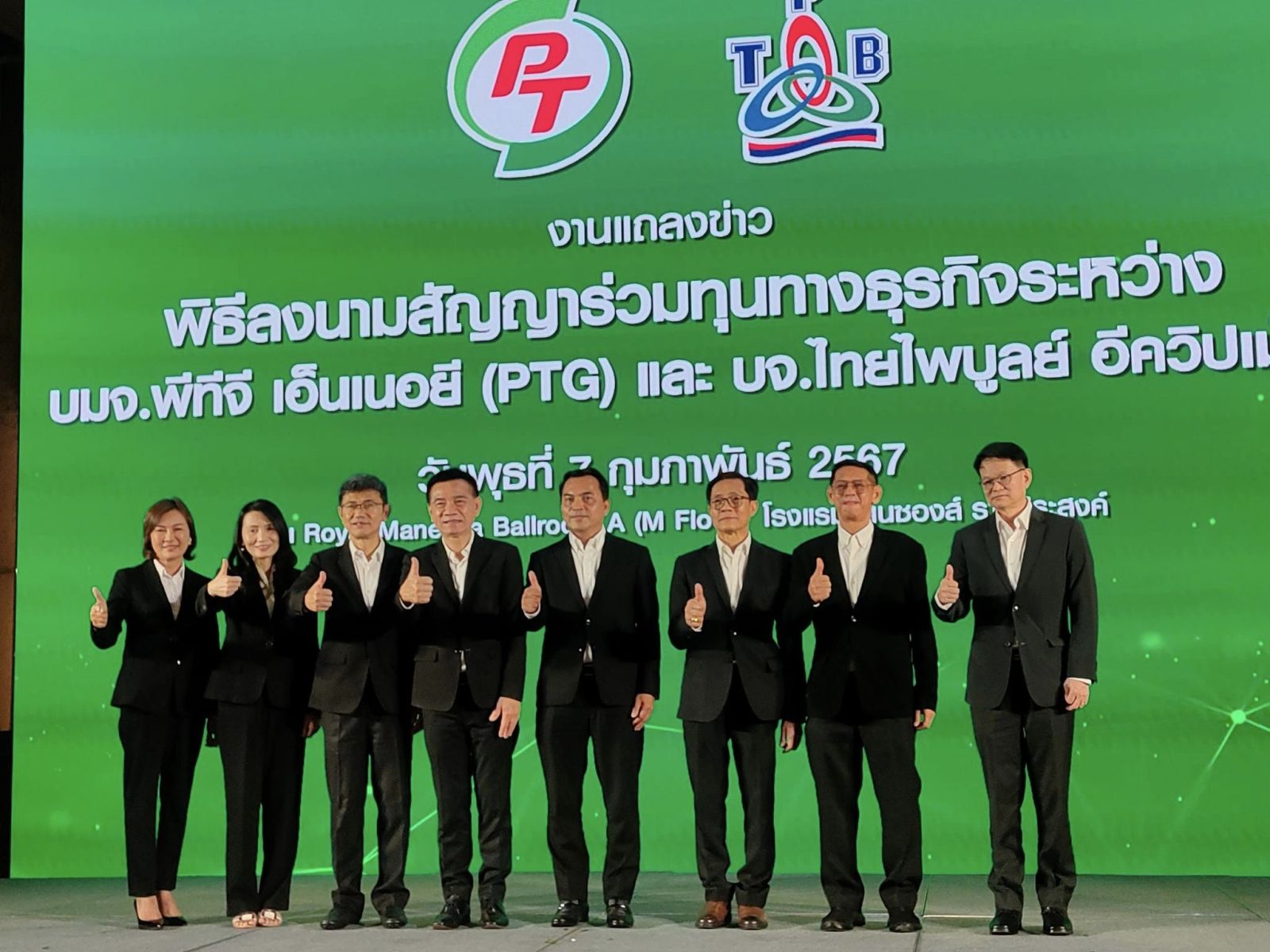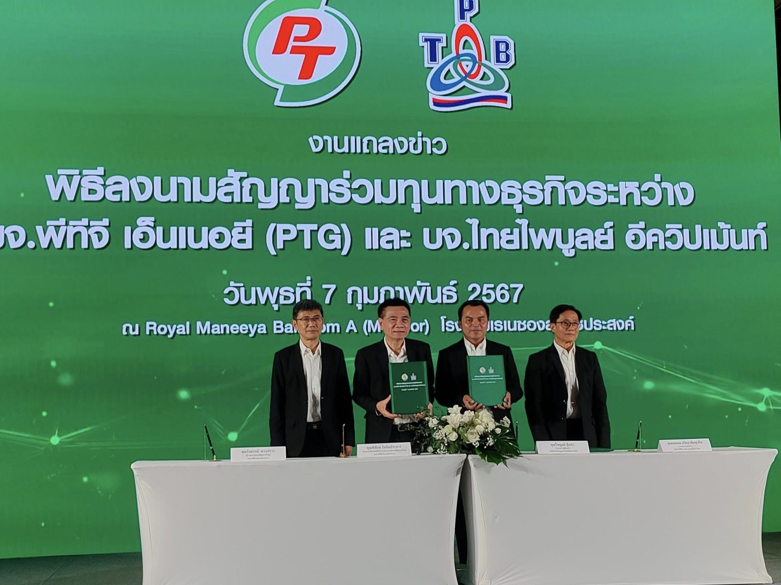 วันนี้ (7 ก.พ.67) บริษัท พีทีจี เอ็นเนอยี จำกัด (มหาชน) หรือ PTG เซ็นสัญญาเป็นพันธมิตรกับบริษัท ไทยไพบูลย์ อีควิปเม้นท์ จำกัด โดยเข้าซื้อหุ้นสามัญเพิ่มทุนของไทยไพบูลย์ฯ ในครั้งแรกสัดส่วนไม่น้อยกว่า 10% คิดเป็นมูลค่าลงทุนไม่เกิน 103 ล้านบาท ซึ่งในอนาคต PTG จะมีสิทธิเข้าซื้อหุ้นสามัญเพิ่มทุนของไทยไพบูลย์ฯ เพื่อถือหุ้นในสัดส่วนสูงสุดไม่เกิน 33.33% คิดเป็นมูลค่าการลงทุนประมาณการ ตลอดโครงการทั้งสิ้น 400 ล้านบาท ขึ้นอยู่กับผลการดำเนินงานของไทยไพบูลย์ เพื่อขยายการลงทุนธุรกิจบริหารจัดการขยะและผลิตเชื้อเพลิงขยะ รวมถึงรองรับแผนธุรกิจ 5 ปีเพื่อขยายพอร์ตธุรกิจ Non-Oil ด้าน Renewable Energy ให้บริษัทฯ เติบโตอย่างยั่งยืน เพื่อบรรลุเป้าหมายในการส่งเสริม และผลักดันให้เกิดการสำนึกรับผิดชอบต่อสังคมและสิ่งแวดล้อม