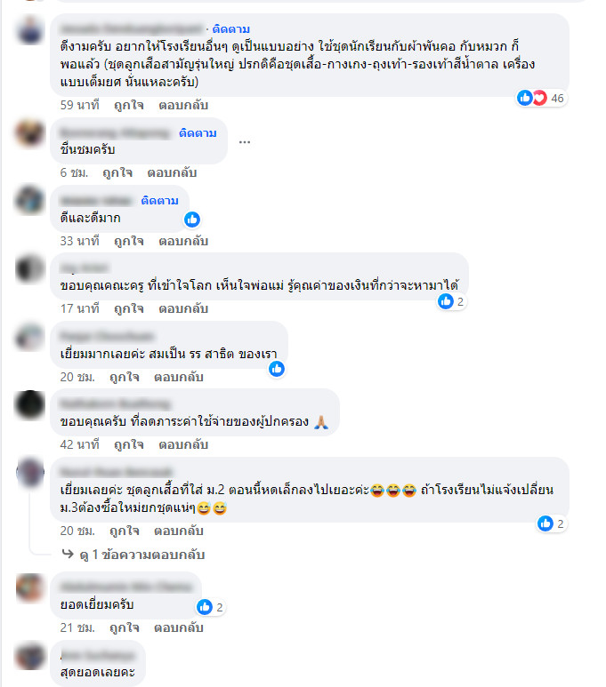 ทั้งนี้ประเด็นเรื่องชุดลูกเสือ-เนตรนารี เป็นเรื่องที่พูดถึงกันอย่างมาก ทั้งในส่วนของผู้ปกครอง ที่ต้องรับภาระเพิ่มจากการซื้อชุดที่มีราคาแพง แต่ใส่เพียงสัปดาห์ละ 1 ครั้งเท่านั้น ซึ่งมีผู้เข้าไปชื่นชมแนวคิดของทางโรงเรัยนกันเปแนจำนวนมาก ทั้งขอบคุณที่คุณครูและโรงเรียนเข้าใจในภาระค่าใช้จ่ายของผู้ปกครอง,บางความเห็นชื่นชมว่าเป็นโรงเรียนที่ทันสมัยเข้าใจโลก