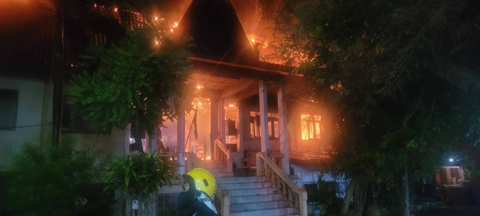 จ.ราชบุรี ไฟไหม้กุฏิพระวัดดังเมืองโพธาราม เสียหายวอดทั้งหลัง เกิดเหตุเจ้าอาวาสเจ็บถูกไฟลวก กู้ภัยเร่งนำส่ง รพ.