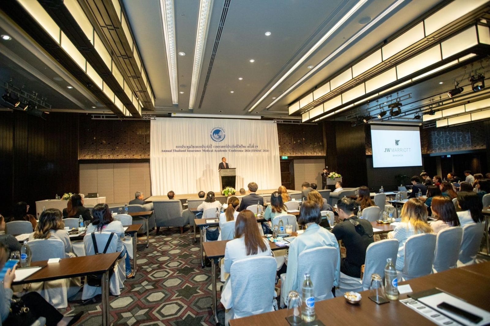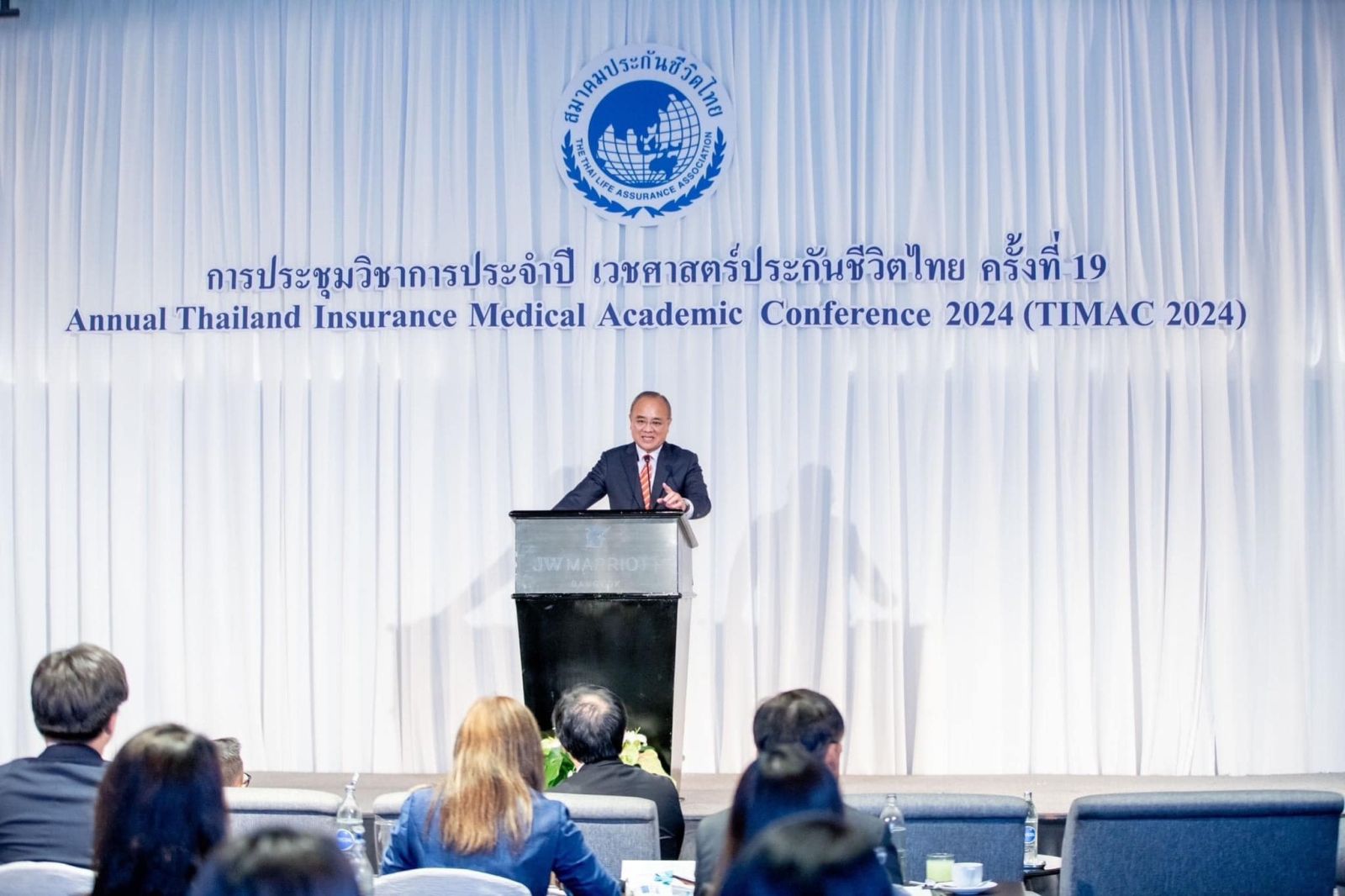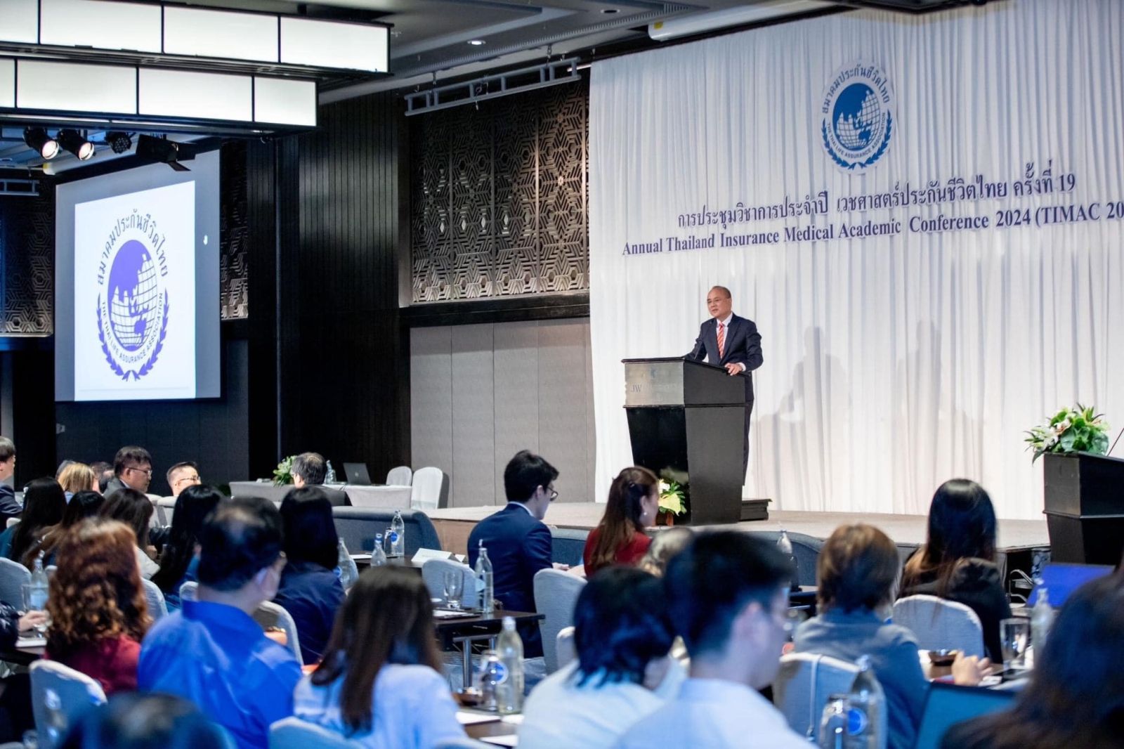 นายชูฉัตร ประมูลผล เลขาธิการคณะกรรมการกำกับและส่งเสริมการประกอบธุรกิจประกันภัย (เลขาธิการ คปภ.) เป็นประธานเปิดงานการประชุมวิชาการประจำปีเวชศาสตร์ประกันชีวิตไทย ครั้งที่ 19 Annual Thailand Insurance Medical Academic Conference 2024 (TIMAC-2024) เมื่อวันที่ 7 กุมภาพันธ์ 2567 ณ ห้องประชุมสุขุมวิท 1-2 โรงแรมเจดับบลิว แมริออท กรุงเทพมหานคร ในโอกาสนี้ เลขาธิการ คปภ. ได้กล่าวปาฐกถาพิเศษ เรื่อง “การส่งเสริมระบบประกันสุขภาพเอกชนของไทย” มีใจความตอนหนึ่งว่า การประกันภัยสุขภาพ ถือเป็นเครื่องมือบริหารความเสี่ยง ที่สำคัญของผู้เอาประกันภัย ไม่ว่าจะเป็นค่ารักษาพยาบาลในกรณีที่เป็นผู้ป่วยใน ผู้ป่วยนอก ค่ารักษาพยาบาลที่เกิดขึ้นจากอุบัติเหตุ รวมไปถึงการประกันภัยคุ้มครองโรคร้ายแรง ซึ่งส่วนใหญ่แล้วผู้เอาประกันภัยจะซื้อประกันภัยสุขภาพ เพื่อเพิ่มความสะดวกสบาย ไม่ต้องสำรองจ่ายค่ารักษาพยาบาลไปก่อน และคาดหวังว่าจะได้รับการดูแล และได้รับผลประโยชน์ตามความคุ้มครองจากกรมธรรม์โดยสะดวก ซึ่งในอดีตการประกันภัยสุขภาพของแต่ละบริษัทในความคุ้มครองที่มีชื่อเดียวกันอาจให้ความคุ้มครองที่แตกต่างกัน ทำให้ผู้เอาประกันภัยรวมไปถึงบุคลากรทางการแพทย์ที่ให้การบริการเกิดความสับสน ดังนั้น สำนักงาน คปภ. จึงได้เข้ามามีบทบาท ร่วมกับภาคธุรกิจประกันภัย จัดทำโครงการพัฒนาปรับปรุงแก้ไขสัญญาประกันภัยสุขภาพให้สอดคล้องกับวิวัฒนาการเทคโนโลยี และวิธีการรักษาทางการแพทย์ในปัจจุบัน รวมถึงเพื่อเพิ่มความยั่งยืนของระบบการประกันภัยสุขภาพ และสอดคล้องกับนโยบายรัฐบาลในเรื่องการปฏิรูประบบสาธารณสุข ซึ่งได้รับผลตอบรับจากภาคธุรกิจและผู้เอาประกันภัยเป็นอย่างดี โดยออกเป็นคำสั่งนายทะเบียน เรื่อง การประกันภัยสุขภาพแบบมาตรฐาน หรือที่รู้จักกันในชื่อว่า New Health Standard และขณะนี้อยู่ในระหว่างการประสานความร่วมมือกับสมาคมโรงพยาบาลเอกชนในการจัดทำคู่มือมาตรฐานการเบิกค่ารักษาพยาบาล (SIMB)