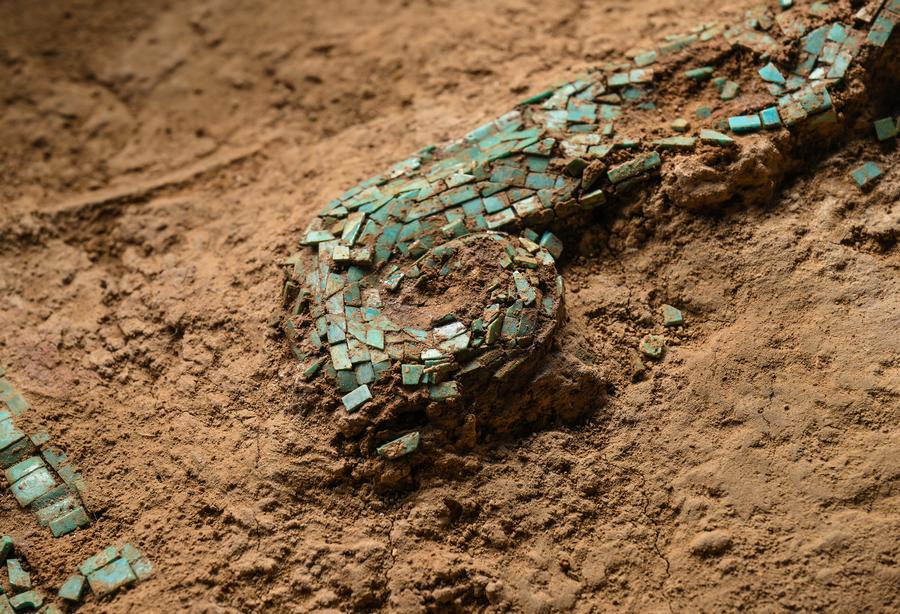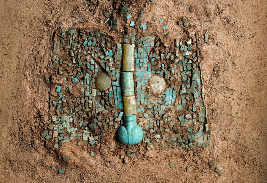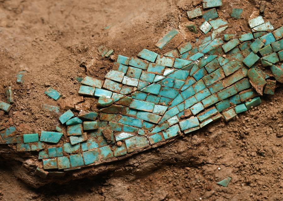 ปักกิ่ง, 9 ก.พ. (ซินหัว) -- ชวนชมรายละเอียดสุดวิจิตรของสิ่งประดิษฐ์โบราณรูปทรงมังกร ซึ่งประกอบขึ้นจากเทอร์คอยส์ (turquoise) หรือพลอยสีขี้นกการเวก จำนวนกว่า 2,000 ชิ้น โดยถูกขุดพบเมื่อปี 2002 จากหลุมศพของชนชั้นสูงที่แหล่งโบราณคดีเอ้อร์หลี่โถว ในเมืองลั่วหยาง มณฑลเหอหนานทางตอนกลางของจีน