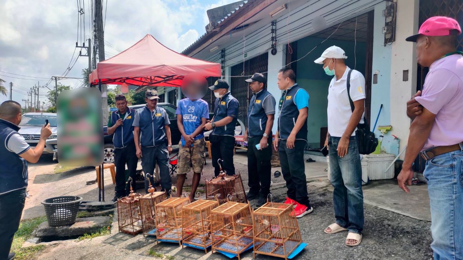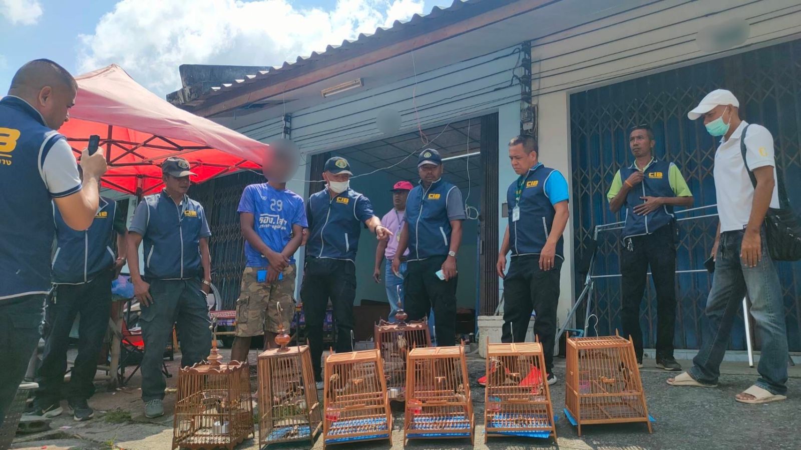 สืบเนื่องจากเจ้าหน้าที่ตำรวจได้สืบสวนทราบว่า มีผู้ลักลอบทำการซื้อขายสัตว์ป่าคุ้มครองจำพวกนกปรอดหัวโขนผ่านทางเฟซบุ๊ก โดยโพสต์ซื้อขายในกลุ่มปิด เจ้าหน้าที่ตำรวจจึงทำการติดต่อสอบถาม และได้นัดหมายจุดซื้อขาย ก่อนที่เจ้าหน้าที่ตำรวจจะไปยังจุดนัดหมายดังกล่าว พบผู้ต้องหากำลังยืนรออยู่หน้าบ้าน โดยมีนกปรอดที่ใส่กรงไว้จำนวนหลายกรง เจ้าหน้าที่ตำรวจจึงได้แสดงตัวขอตรวจสอบ