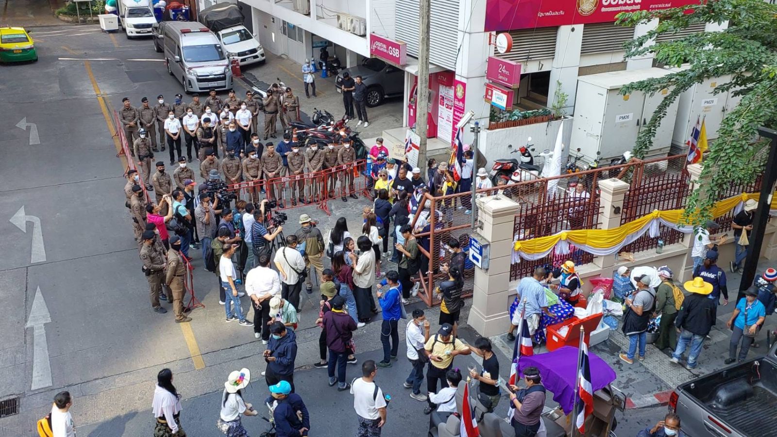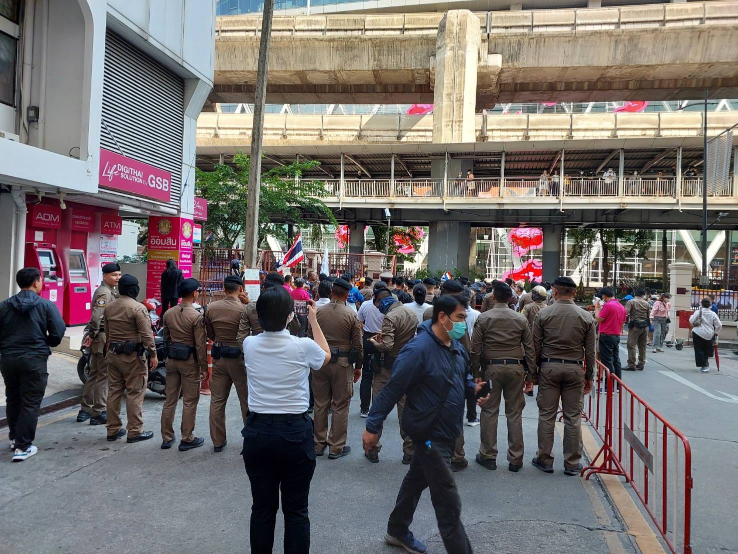 14 ก.พ.67 กลุ่มเครือข่ายนักศึกษาปฏิรูปประเทศไทย (คปท.) ศูนย์รวมประชาชนปกป้องสถาบัน (ศปปส.) กองทัพธรร ประมาณ 100 คน เดินทางมาร่วมกันทำกิจกรรรม บริเวณด้านหน้า ของ รพ.ตำรวจ กรณียื่นค้านพักโทษ “ทักษิณ ชินวัตร ”โดยกลุ่มมวลชนดังกล่าว ได้ใช้รถจักรยานยนต์ รถโมบายขยายเสียงทำการปราศรัย บริเวณด้านหน้าฝั่งถนนพระราม 1 โดยมี มีเจ้าหน้าที่ตำรวจควบคุมฝูงชน คอยดูแลรักษาความเรียบร้อย