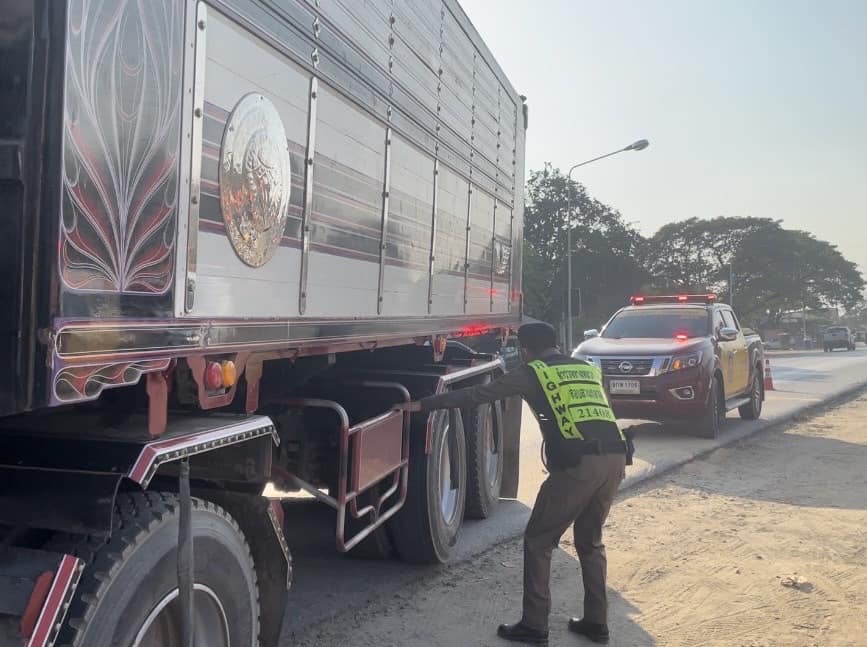 จากผลการดำเนินการกวดขันจับกุมรถบรรทุกน้ำหนักเกินตามกฎหมายข้างต้นนี้เเล้ว ทางเจ้าหน้าที่ตำรวจทางหลวงนครปฐมยังคงกวดขันปราบปรามรถบรรทุกน้ำหนักเกินต่อไปอย่างต่อเนื่อง โดยเคสล่าสุด เจ้าหน้าที่ชุดจับกุมได้ออกตรวจพื้นที่รับผิดชอบจนมาถึงบริเวณทางหลวง 3233 กม.9+490 ต.วัดละมุด อ.นครชัยศรี จ.นครปฐม พบรถบรรทุกพ่วง 22 ล้อ ยี่ห้อ ISUZU ลายสีม่วง วิ่งมาบนถนนลักษณะมีการบรรทุกสิ่งของที่มีน้ำหนักจำนวนมาก เจ้าหน้าที่จึงได้ให้สัญญาณหยุดรถเพื่อขอตรวจสอบ โดยให้รถบรรทุกคันดังกล่าวขับจอดชิดช่องทางด้านซ้ายสุด