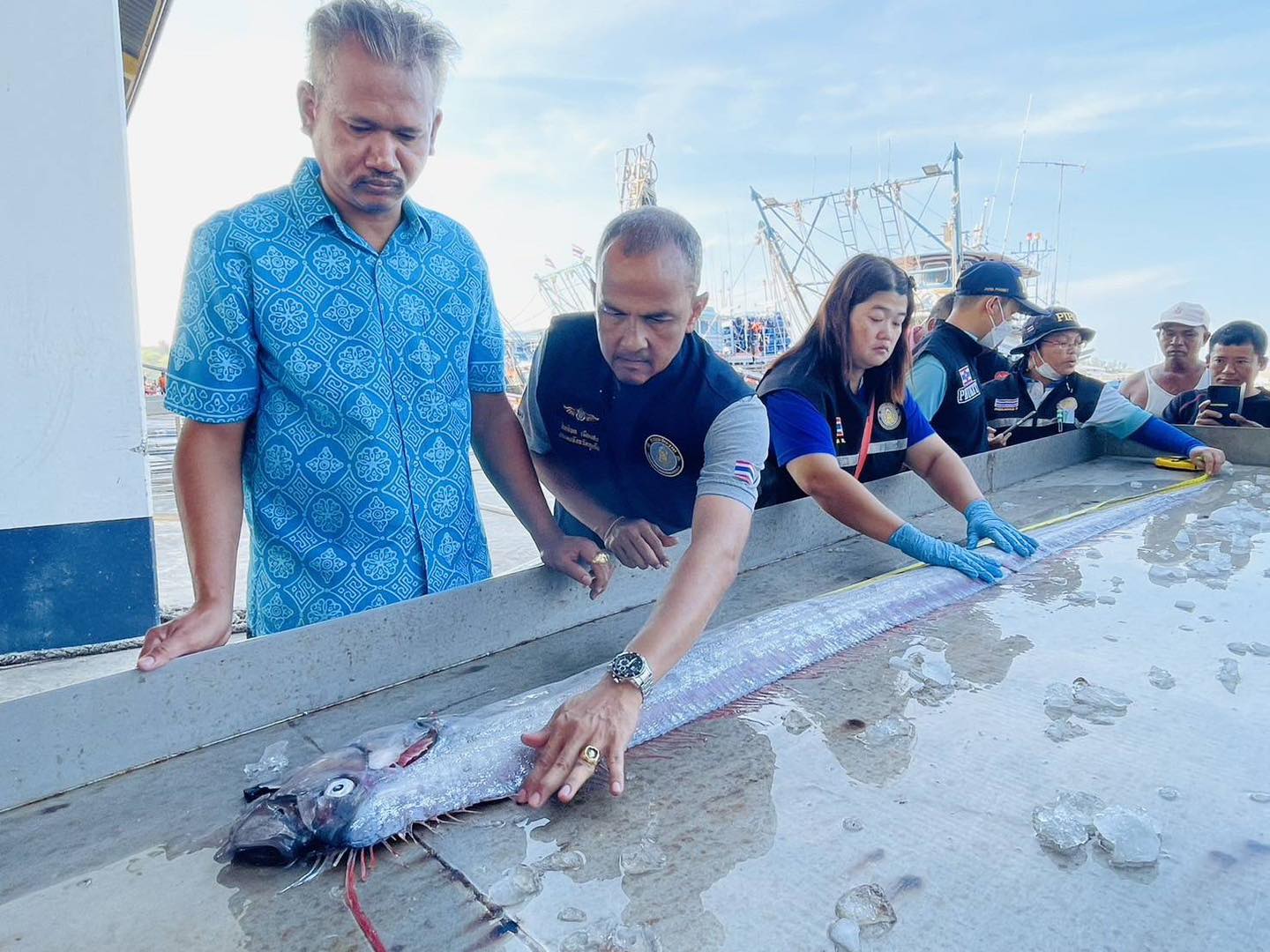16 ก.พ.2567 เมื่อเวลา 08.45 น. ผู้สื่อข่าวรายงานว่า ที่องค์การสะพานปลาภูเก็ต ต.รัษฎา อ.เมือง นายสิทธิพล เมืองสง ประมงจังหวัดภูเก็ตนำเจ้าหน้าที่ประมงจังหวัดตรวจสอบซากปลา Oarfish หรือ ปลาพญานาคที่นำขึ้นมาจากเรือประมง ปมัสยานำโชค 4 หลังจากติดอวนลากคู่ ขณะเก็บกู้อวนบริเวณทิศตะวันตกนอกเขตชายฝั่งจังหวัดภูเก็ต ห่างจากฝั่งประมาณ 15 ไมล์ทะเล แต่ตายแล้ว เมื่อช่วงเที่ยงวันที่ 15 ก.พ.ที่ผ่านมา