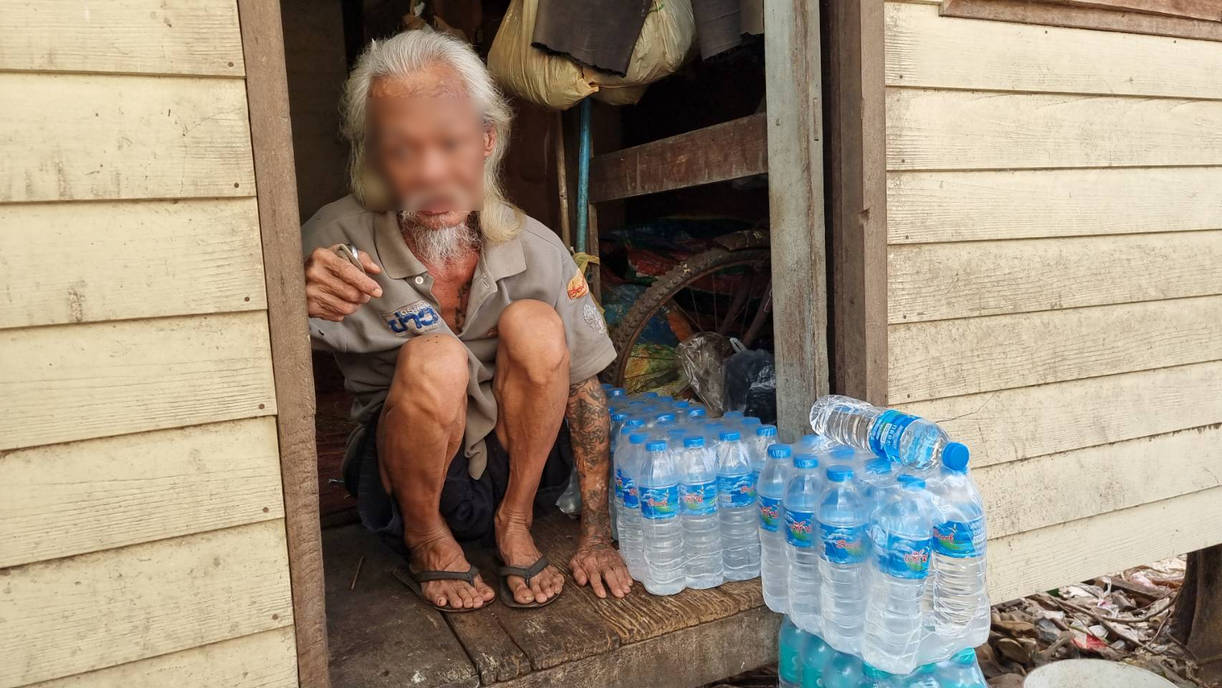 ผู้สื่อข่าวลงพื้นที่พบว่า ชายคนดังกล่าวคือนายสมรักษ์ อายุ 65 ปี อดีต รปภ. ซึ่งถูกรถชนจนทำให้หมอนรองกระดูกเคลื่อนทับเส้นประสาท จนต้องออกจากงานมาใช้ชีวิตตามลำพัง ที่บ้านพักหลังนี้เนื่องจากอาการเจ็บป่วยจนทำเดินไม่ถนัด