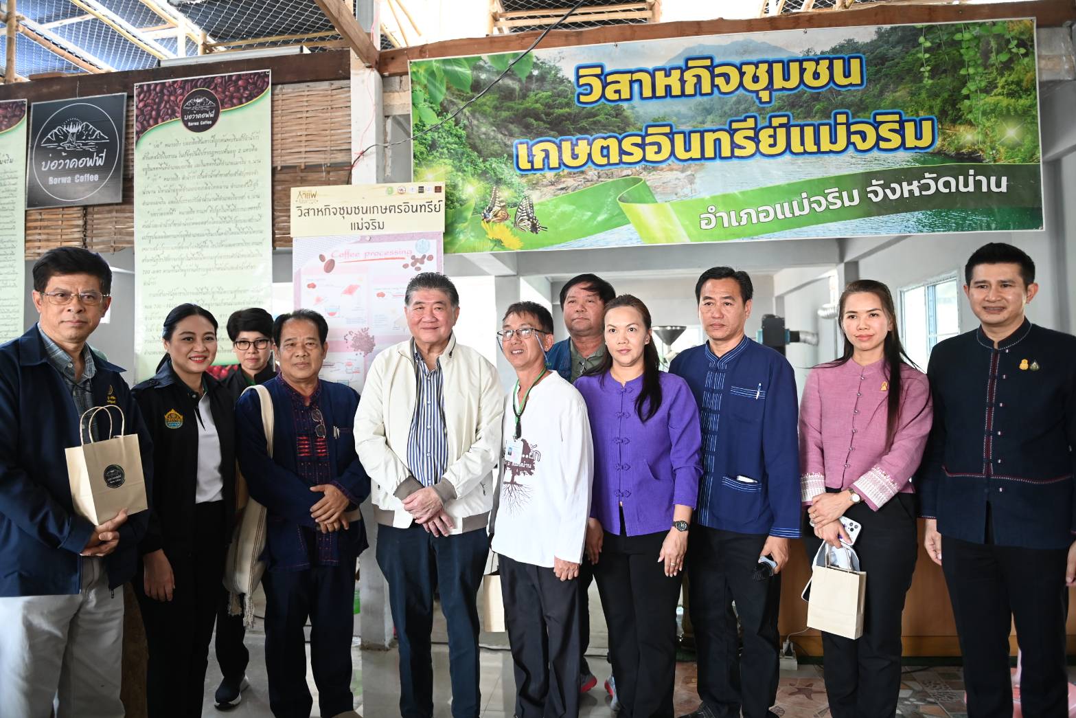 วันที่ 17 กุมภาพันธ์ 2567 นายภูมิธรรม เวชยชัย รองนายกรัฐมนตรีและรัฐมนตรีว่าการกระทรวงพาณิชย์ ลงพื้นที่ผลักดันการขึ้นทะเบียนสิ่งบ่งชี้ทางภูมิศาสตร์ (GI) เพื่อสร้างมูลค่าเพิ่มให้กับผลิตภัณฑ์ในพื้นที่ พัฒนาคุณภาพชีวิตความเป็นอยู่ของประชาชน พร้อมรับฟังบรรยายกระบวนการผลิตกาแฟ (โรงคั่ว ผลิต และบรรจุ) ที่วิสาหกิจชุมชนเกษตรอินทรีย์แม่จริม จ.น่าน โดยเปิดเผยว่า การผลักดันการขึ้นทะเบียนสินค้าสิ่งบ่งชี้ทางภูมิศาสตร์ (GI) เป็นนโยบายสำคัญของกระทรวงพาณิชย์ ที่ตนต้องการยกระดับคุณภาพชีวิต ความเป็นอยู่ของพี่น้องประชาชนผ่านการส่งเสริมสินค้าชุมชนท้องถิ่นที่มีอัตลักษณ์ด้วยสิ่งบ่งชี้ทางภูมิศาสตร์ การลงพื้นที่แหล่งเพาะปลูกและผลิตกาแฟน่านในพื้นที่ดอยแม่จริม อ.แม่จริม และดอยสวนยาหลวง อ.ท่าวังผา เพื่อส่งเสริมและเตรียมผลักดันขึ้นทะเบียนสิ่งบ่งชี้ทางภูมิศาสตร์รายการใหม่ของจังหวัดน่าน และได้หารือกลุ่มเกษตรกรผู้ผลิต ผู้ประกอบการค้ากาแฟใน จ.น่าน รวมไปถึงผู้ประกอบการรุ่นใหม่ (YEC) ของจังหวัดน่าน และ MOC Biz Club เพื่อหารือแนวทางในการพัฒนาศักยภาพและยกระดับสินค้ากาแฟน่านสู่อุตสาหกรรมตลาดกาแฟต่างประเทศ