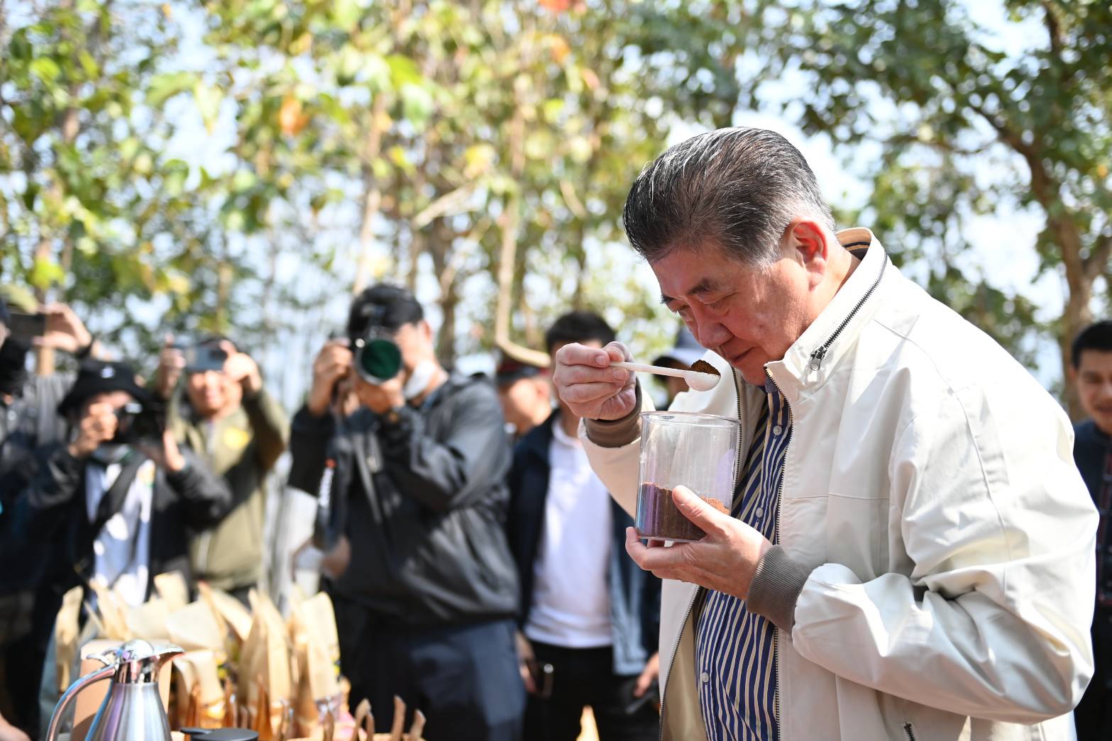 "อยากให้พิถีพิถันทำคุณภาพให้ดี ถ้าได้จีไอมาเสริมก็จะยิ่งเกิดมูลค่าเพิ่ม ทำให้คนอยู่กับชุมชน อยู่กับครอบครัว คนหนุ่มสาวถ้ามีรายได้ก็ไม่จำเป็นต้องไปอยู่ที่อื่น ขณะนี้กรมทรัพย์สินทางปัญญา กระทรวงพาณิชย์ กำลังช่วยกันกับ BEDO (สำนักงานพัฒนาเศรษฐกิจจากฐานชีวภาพ (องค์การมหาชน) เรียกโดยย่อว่า สพภ.)ช่วยกันเขียนคำร้องให้ คาดว่าเดือนหน้าหรือเดือนถัดไป สินค้ากาแฟที่นี่จะเป็นสินค้าจีไอ เพิ่มมูลค่าได้มากขึ้น และทุกหน่วยงานราชการสำคัญมาทำงานร่วมกัน ตนเป็นคนกินกาแฟทั่วไปไม่ใช่คอกาแฟ แต่ได้มาเริ่มลิ้มรสชาติที่นี่ ทำให้ชีวิตกาแฟของตนเกิดที่นี่ ตอนแรกตนคิดในใจว่ารสชาติคงไม่ต่างกัน แต่ปรากฏว่าแตกต่างจริงๆ สามารถรู้ถึงรสชาติหอมหวาน ได้กลิ่นผลไม้ ได้ความระยิบระยับที่กระพุ้งแก้ม กาแฟเป็นศิลปะไม่แพ้ไวน์ของต่างประเทศ ตนอยากเชิญชวนพี่น้องทานกาแฟบ้านเรา เป็นกาแฟคุณภาพทั้งเชียงใหม่ เชียงราย น่าน ชาวบ้านสามารถทำมาตรฐานได้ วันนี้เห็นคนหนุ่มคนสาวอยู่ที่หมู่บ้านแล้วสบายถ่ายทอดให้น้องๆเค้าต่อ ชื่นชมที่ให้ประสบการณ์กับตน และพลังของพวกชุมชนในการแก้ไขปัญหา และหน่วยราชการทั้งหมดที่ช่วยกัน"