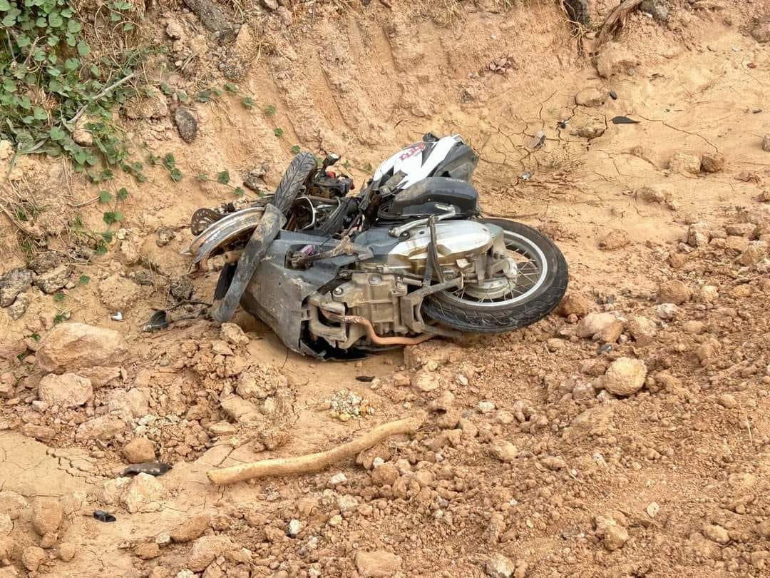 ที่เกิดเหตุ พบรถจักรยานยนต์ ฮอนด้า สกู๊ปปี้ไอ สีขาวดำ ทะเบียน พระนครศรีอยุธยา ล้มคว่ำสภาพพังเสียหายยับ ชิ้นส่วนรถกระจายเกลื่อนทั่วบริเวณ ใกล้กันพบรถกระบะ มิตซูบิชิ สีดำ ทะเบียน บุรีรัมย์ สภาพด้านหน้ารถได้รับความเสียหาย รถทั้งคู่ตกอยู่ข้างถนน