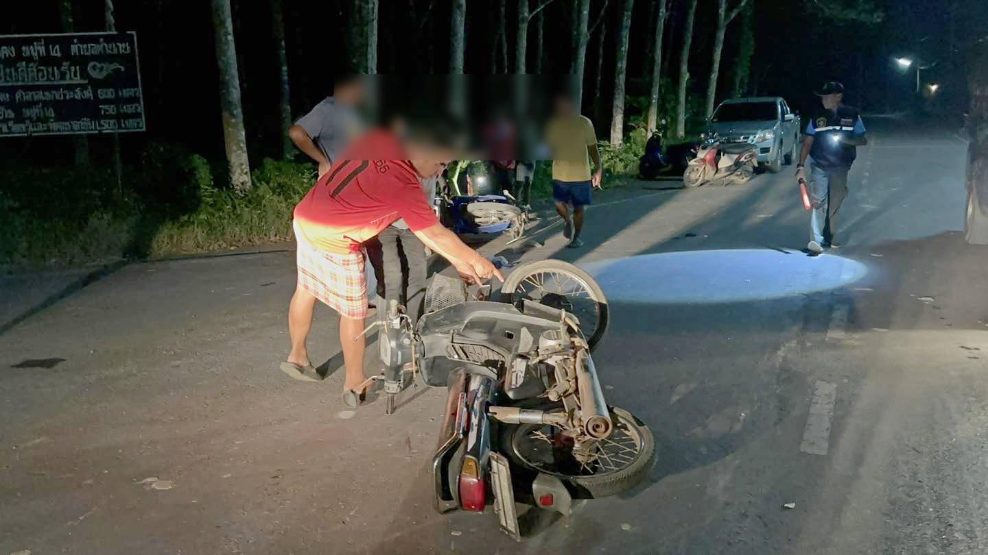 รถจักรยานยนต์ชนกันกลางทาง 3 แพร่ง มีผู้บาดเจ็บสาหัส 1 ราย, อีก 1 รายไปเสียชีวิตที่โรงพยาบาล จ.พัทลุง