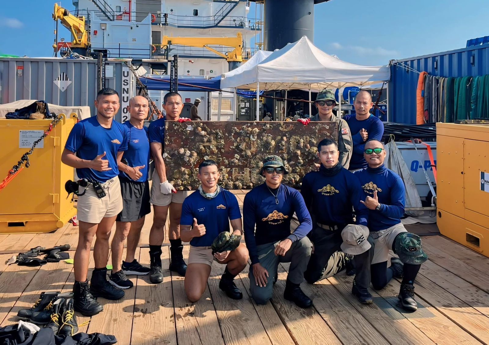 จากการดำน้ำในช่วงเช้าของวันนี้ ชุดประดาน้ำผสมของกองทัพเรือทั้งสองประเทศสามารถนำป้ายเรือหลวงสุโขทัย ซึ่งเป็นสิ่งของชิ้นแรกที่นำขึ้นมาจากเรือได้เป็นผลสำเร็จ
