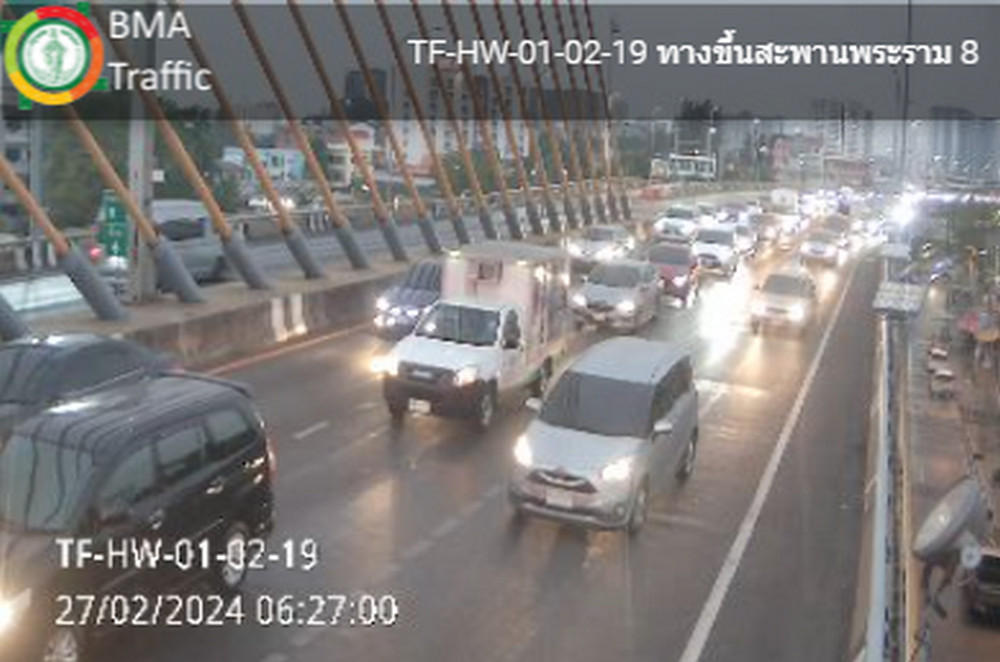 - สะพานพระราม 8 ขาเข้า รถติดแล้ว ท้ายแถวสะสมอยู่ที่โค้งวัดอมรคีรี