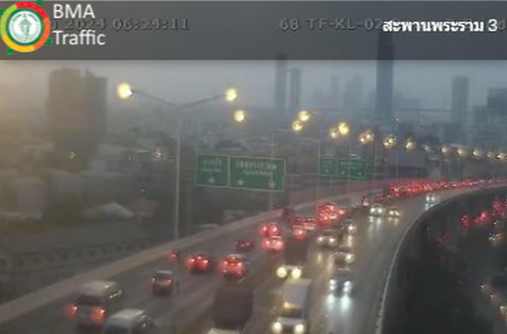 - สะพานพระราม 3 ฝั่งขาเข้า ปริมาณรถมาก เริ่มเคลื่อนตัวได้ช้า
