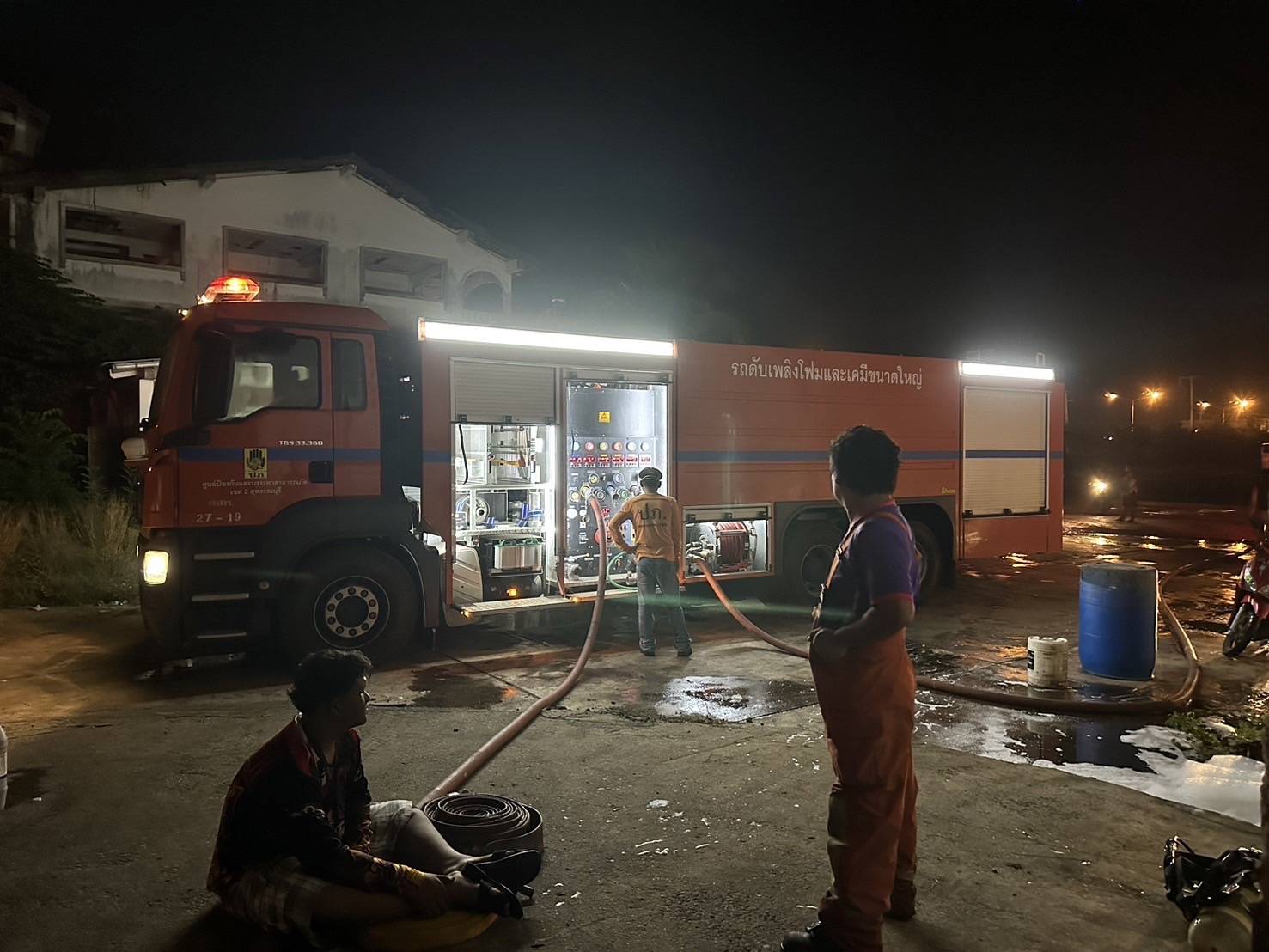 ทางเจ้าหน้าที่ดับเพลิงที่มีชุด SCBA ออกเป็น 2 ชุด พร้อมวัสดุอุปกรณ์ที่เกี่ยวข้อง โฟมดับเพลิง และรถน้ำ และประสานขอรับการสนับสนุนเจ้าหน้าที่ดับเพลิงจาก กทม. และจังหวัดใกล้เคียง