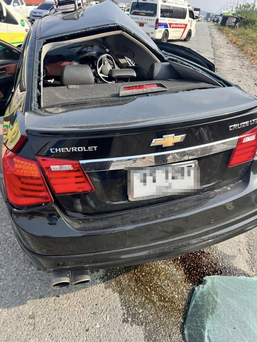 ที่เกิดเหตุ พบรถนั่งส่วนบุคคล เชฟโลเล็ต คลูซ สีดำ ป้ายทะเบียน ชลบุรี ลักษณะชนกับรถบรรทุก 4 ล้อเล็ก อีซูซู สีขาว ป้ายทะเบียน กรุงเทพมหานคร สภาพรถเก๋งพังเสียหาย และพบว่ามีผู้ได้รับบาดเจ็บ 3 ราย ติดอยู่ในยานพาหนะ หน่วยกู้ภัยมังกรดำเนินการงัดรถ และให้การช่วยเหลือนำส่ง รพ.ชลบุรี ตรวจสอบเอกสาร เป็นชายไทย อายุ 45 ปี และอีก 1 รายนั้นเป็นผู้หญิงไทย อายุ 27 ปี ส่วนที่เกิดเหตุ พบว่ามีผู้เสียชีวิต เป็นชายไทย อายุ 35 ปี ในส่วนของสาเหตุอยู่ระหว่างสอบสวนของเจ้าหน้าที่ตำรวจ สภ.เมืองชลบุรี