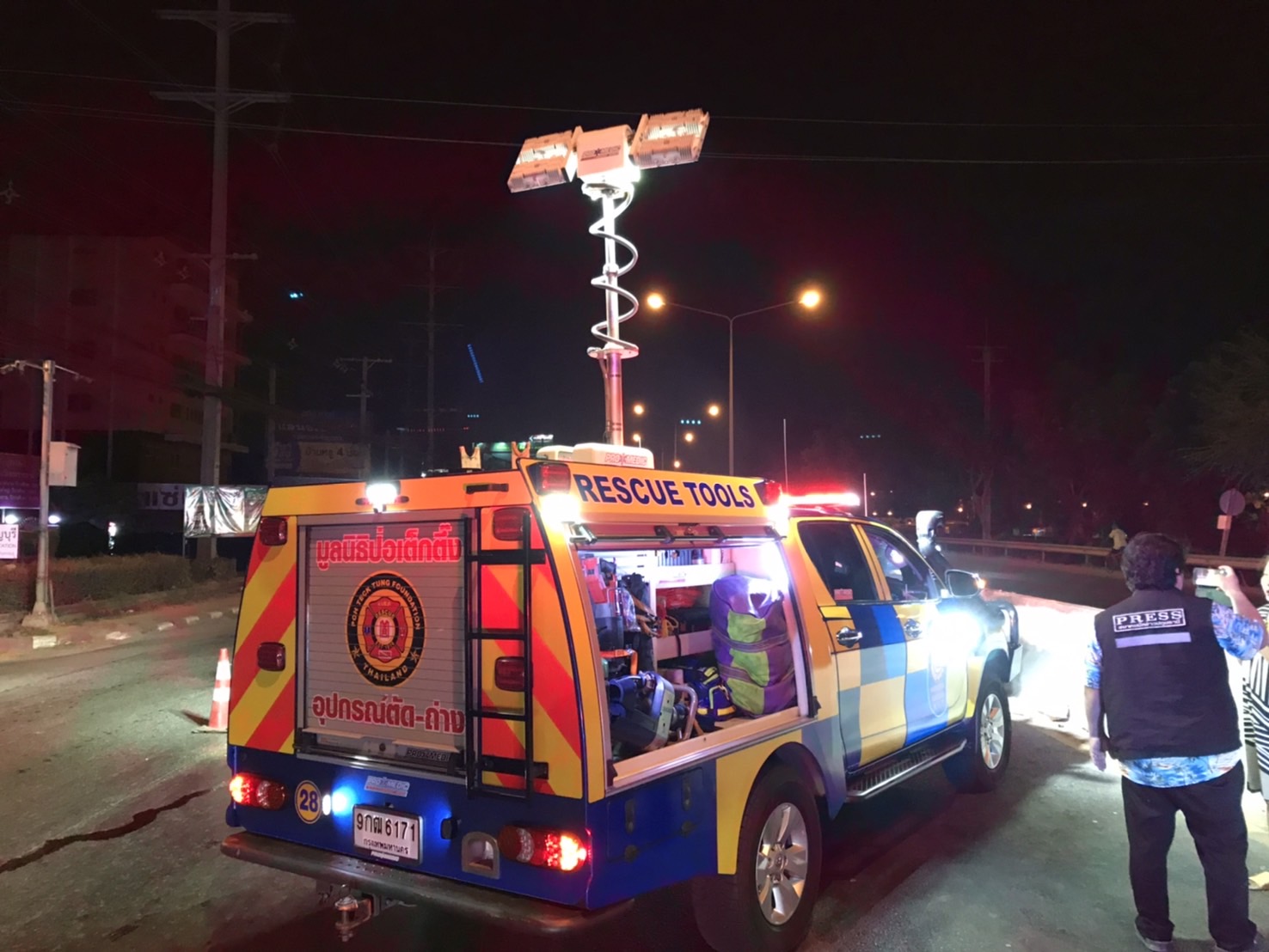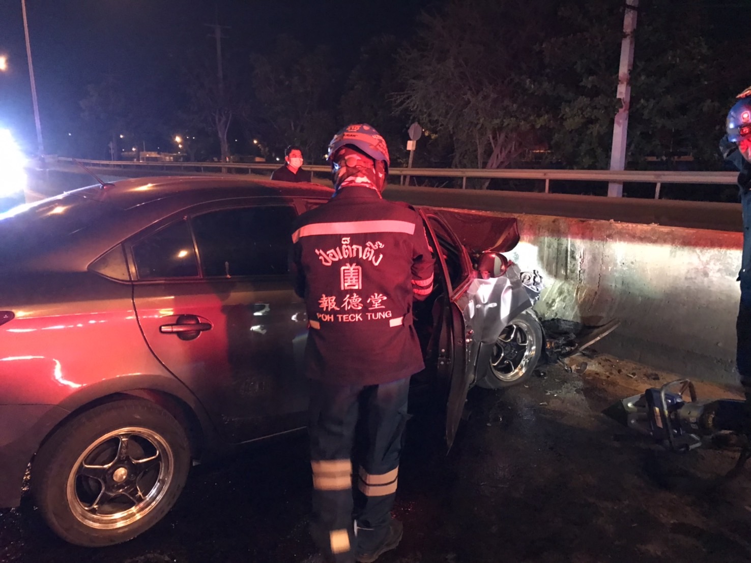 เมื่อเวลา 23.15 น. รับแจ้งจากมูลนิธิป่อเต็กตึ๊ง ตรวจสอบอุบัติเหตุ ถนนรังสิต-นครนายก ขาออก ช่วง คลอง 6 หน้าโรงเรียนธัญรัตน์ รถนั่งส่วนบุคคลชนแบริเออร์ มีผู้เสียชีวิตติดในรถ รอเครื่องตัดถ่างดำเนินการนำร่างผู้เสียชีวิตออกจากรถ พื้นที่ สภ.ธัญบุรี