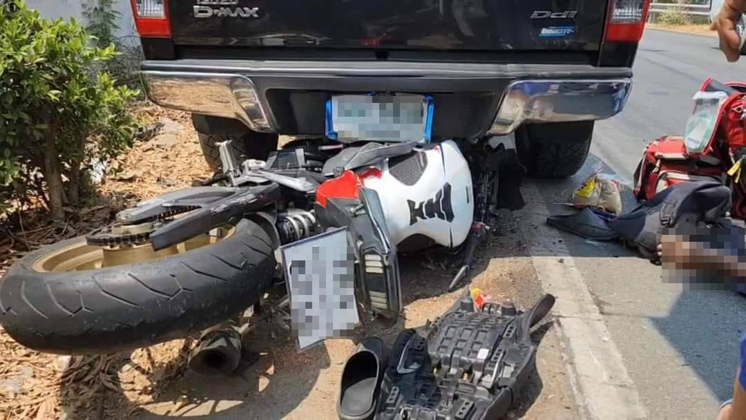 หนุ่มขี่บิ๊กไบค์ เสียหลักชนท้ายรถกระบะ เสียชีวิตช่วงโค้งบ่อปลา จ.สมุทรปราการ