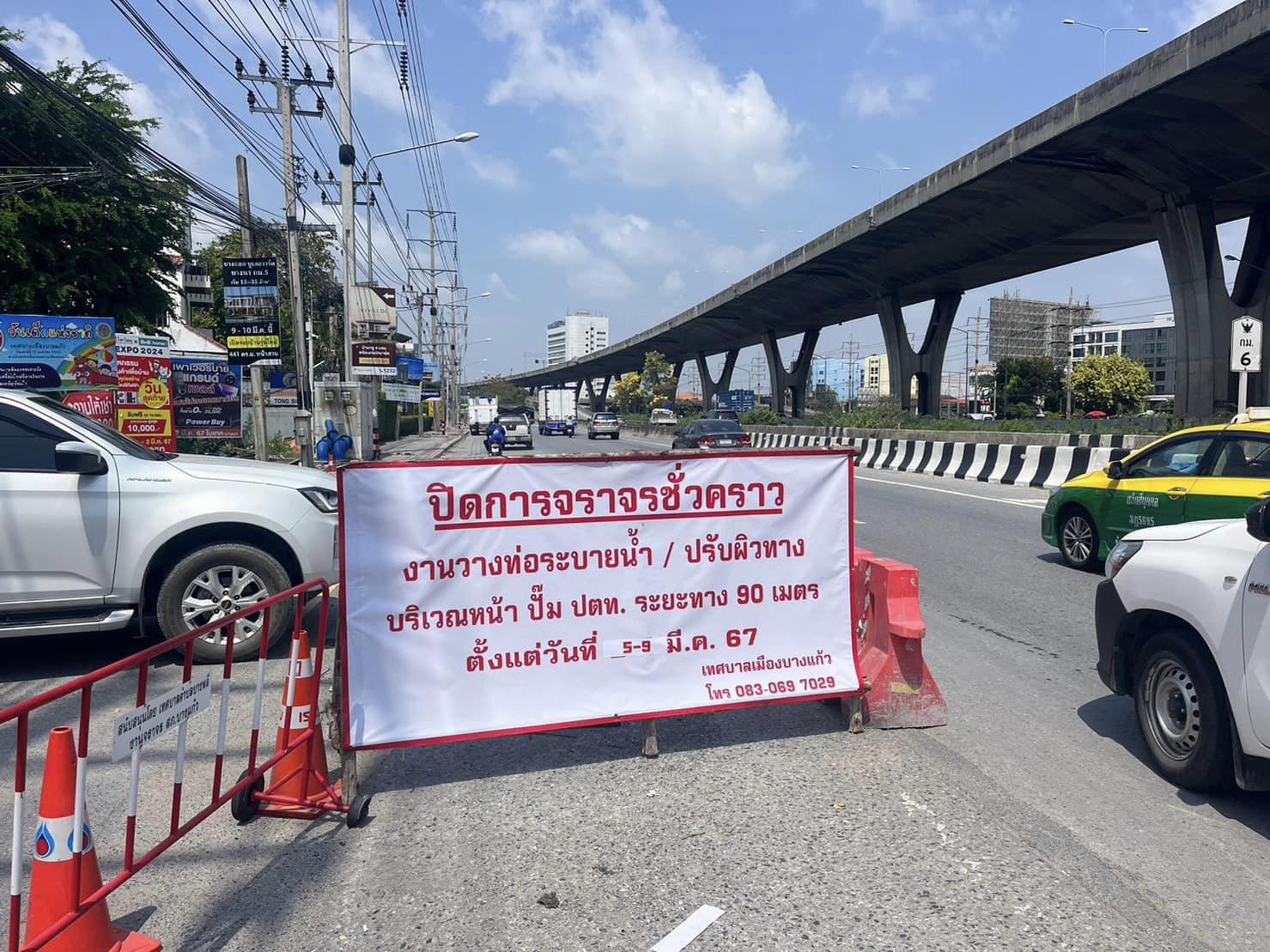 งานวางท่อระบายน้ำ ผู้รับเหมา ดำเนินการ เทคอนกรีต สแต๊ปที่ 2 ระยะทางยาว 80 เมตร เริ่มปิดการจราจร ตั้งแต่วันที่ 5 มี.ค. 67 ถึง วันทึ่ 9 มี.ค. 67