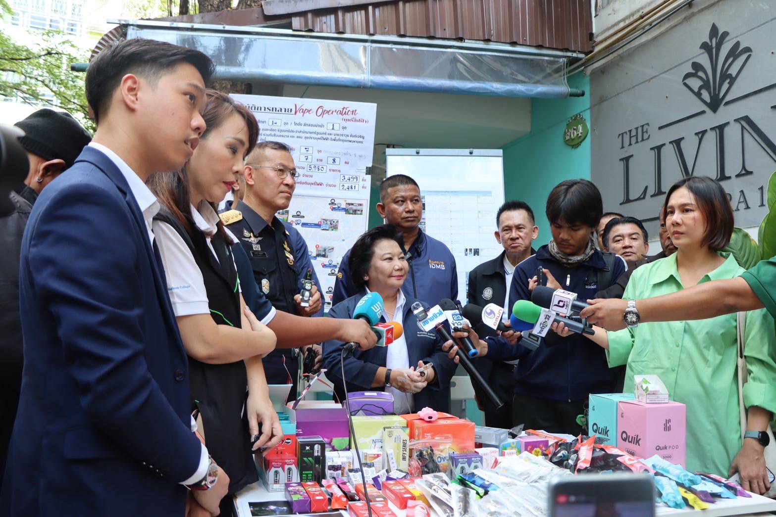 การลงพื้นที่ครั้งนี้ เป็นไปตามปฏิบัติการ “VAPE OPERATION” ที่ทุกภาคส่วนบูรณาการความร่วมมือกันเพื่อปราบปรามและกวาดล้างบุหรี่ไฟฟ้าให้หมดจากสังคมไทย โดยภาพรวมของการลงพื้นที่วันนี้ สามารถจับกุมและเข้ายึดของกลางได้ 14 จุด และโกดังลักลอบนำเข้า 1 จุด จับกุมผู้ต้องหาได้ 7 ราย 8 คน ตรวจยึดของกลางได้ 5,980 รายการ ซึ่งคาดว่าวันนี้จะสามารถยึดของกลางได้ทั้งหมดกว่า 10,000 ชิ้น รวมเป็นมูลค่ากว่า 3 ล้านบาท