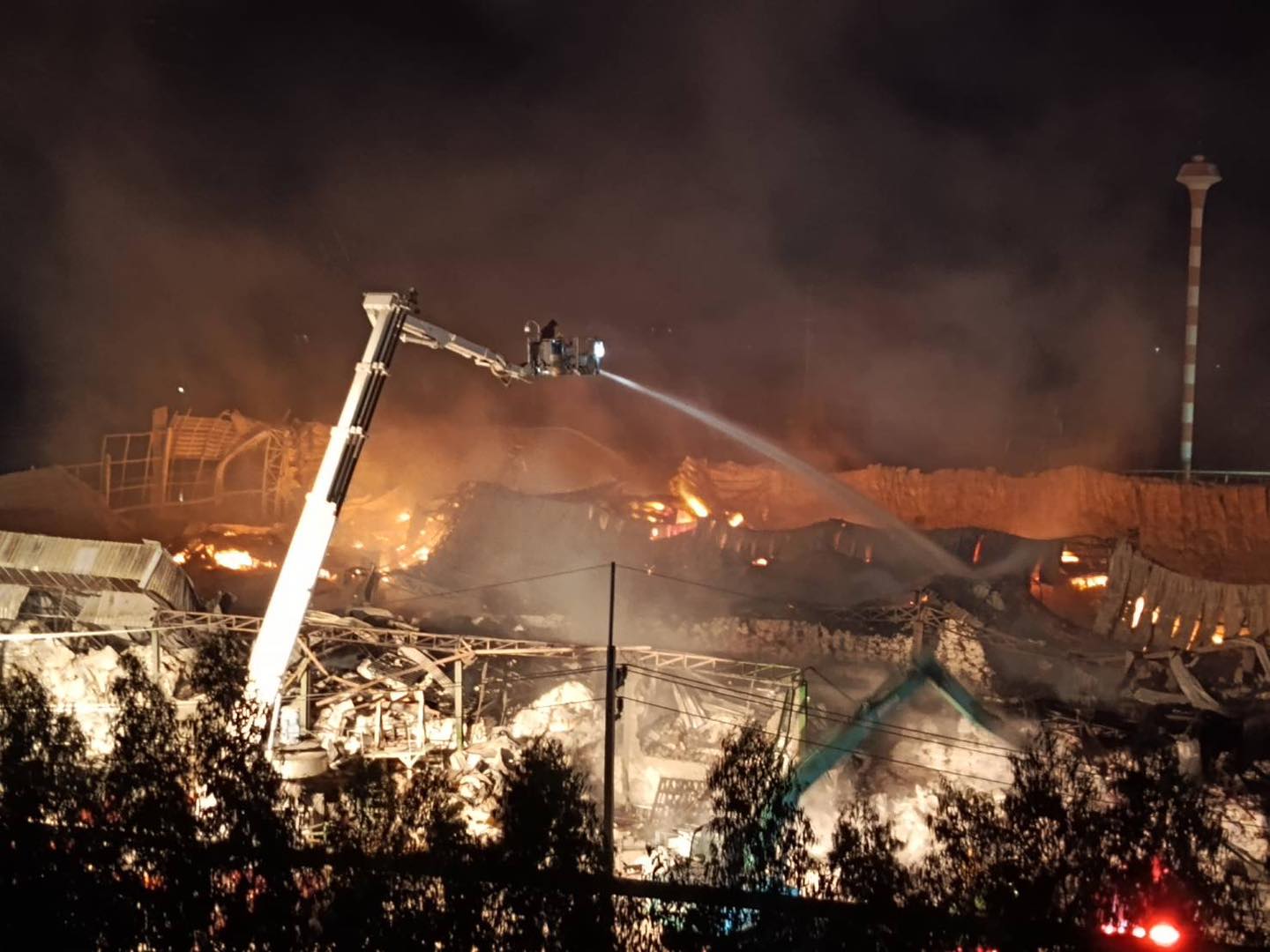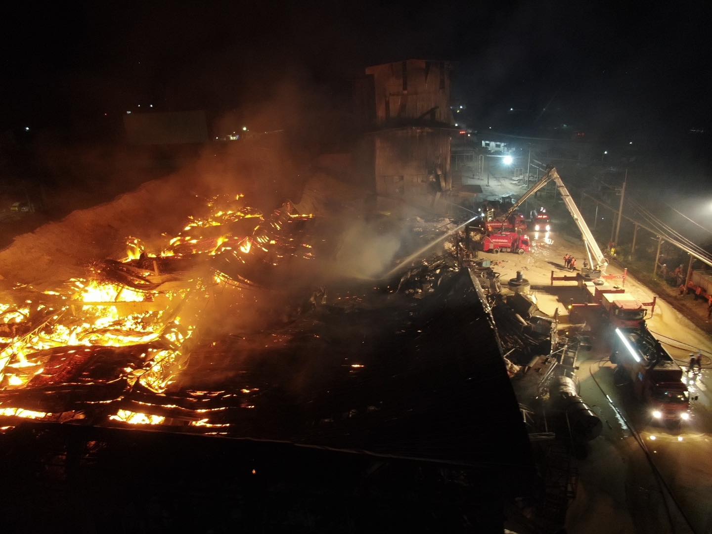 กว่า 12 ชั่วโมงเพลิงไหม้โรงงานแป้งมัน อ.บรบือ จนท.พร้อมรถดับเพลิงยังต้องฉีดน้ำต่อเนื่อง เพลิงยังไม่สงบ จ.มหาสารคาม
