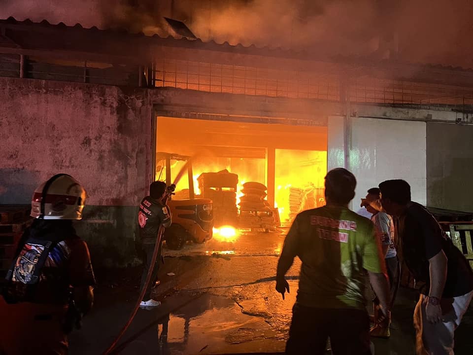 ไฟไหม้โรงงานผลิตแป้งสาลี ย่านพุทธบูชา เจ้าหน้าที่พร้อมด้วยรถดับเพลิง ระดมฉีดน้ำควบคุมก่อนจะลุกลาม