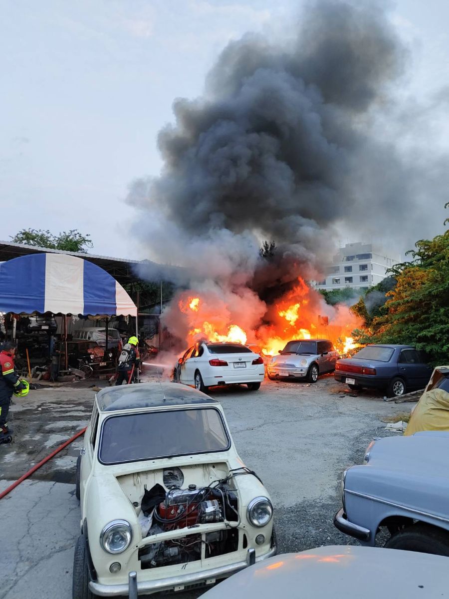 เมื่อเวลา 06.26 น. ศูนย์วิทยุพระราม 199 รับแจ้งเหตุเพลิงไหม้กองยางรถยนต์! ภายในอู่ซ่อมรถยนต์ ซอยลาดพร้าว 64 แยก 4 ตรวจสอบแล้วเป็นเพลิงไหม้กองยางรถยนต์ และลุกลามไหม้รถยนต์ ล่าสุดดับเพลิงและกู้ภัยบางกะปิถึงที่เกิดเหตุ