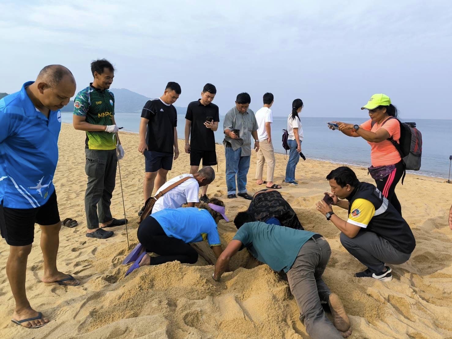 ต่อมาในเวลา 07.20 น. นายวัชระ ส่งสีอ่อน หัวหน้าอุทยานแห่งชาติสิรินาถ, เจ้าหน้าที่อุทยานฯ และเจ้าหน้าที่ศูนย์ปฏิบัติการอุทยานแห่งชาติทางทะเลที่ 2 จังหวัดภูเก็ต เข้าตรวจสอบพบเป็นร่องรอยของเต่ามะเฟือง ขนาดความกว้างอก 110 ซม. ความกว้างพายทั้งหมด 190 ซม. พบตำแหน่งหลุมไข่ พิกัด UTM 0423090 0896878 ความลึกหลุมไข่ 60 ซม. ความกว้างหลุมไข่ 45 ซม. ขนาดของไข่ประมาณ 5.45 ซม. ระยะทางจากชายน้ำถึงหลุมไข่ 24.60 เมตร
