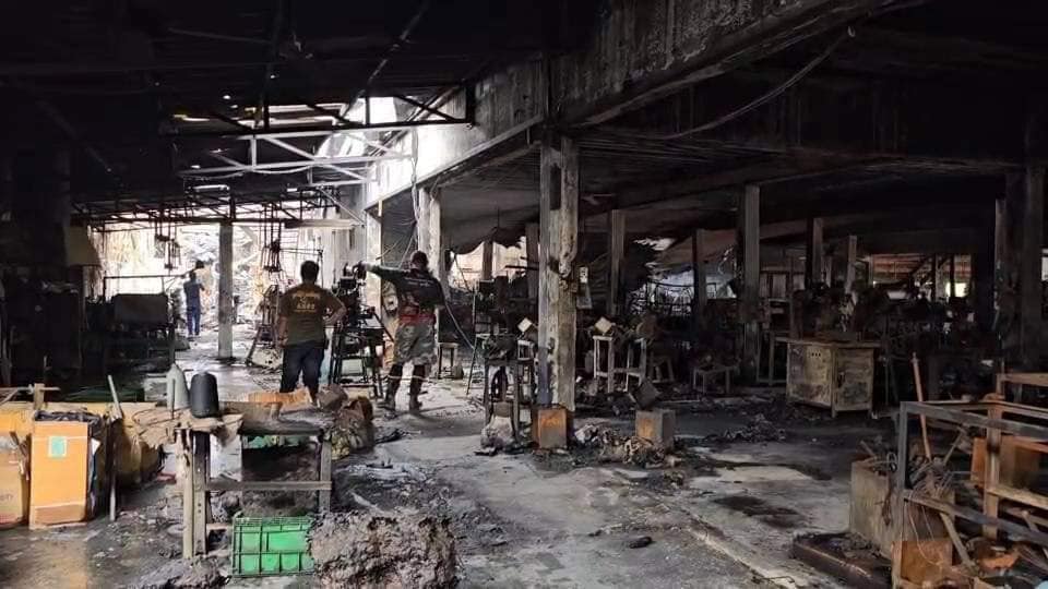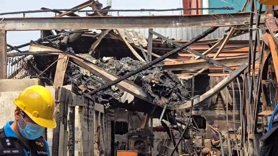 รอง ผบก.ภ.จว.สมุทรสาคร พร้อมด้วย พฐ.เข้าตรวจหาสาเหตุเพลิงไหม้โรงงานผลิตซิป
