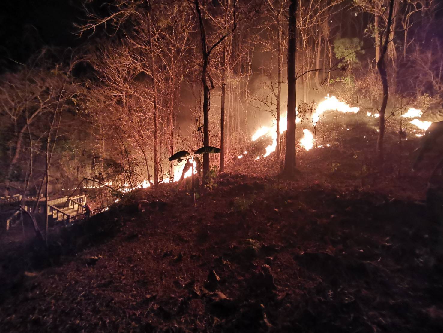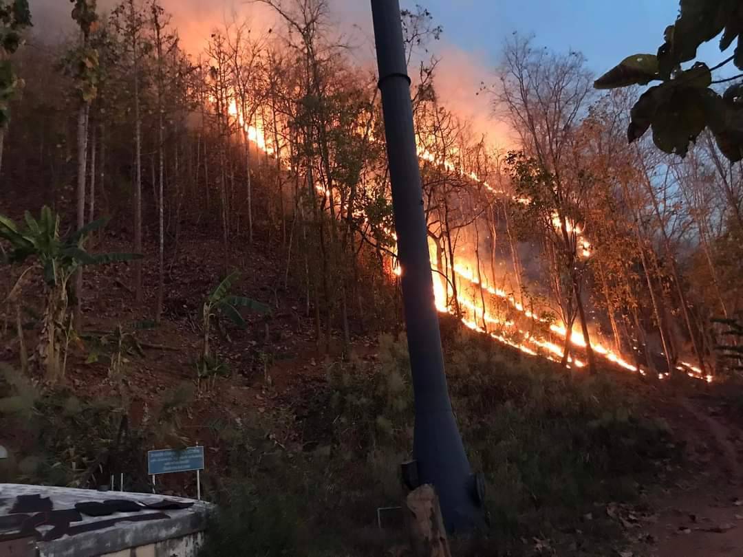 ไฟป่าปะทุหนัก พื้นที่ป่าหลังวัดดอยเกิ้ง แม่สะเรียง ระดมรถน้ำเข้าสกัด หวั่นลุกลามเข้าหมู่บ้าน จ.แม่ฮ่องสอน