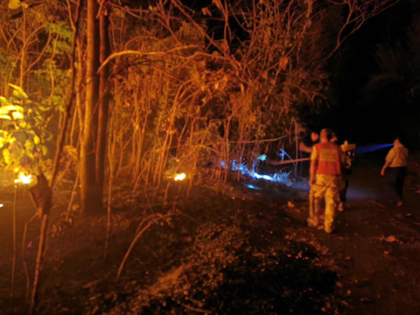 วันที่ 13 มี.ค. 2567 เวลา 18.30 น. บริเวณพื้นที่ป่าหลังวัดดอยเกิ้ง อำเภอแม่สะเรียง จังหวัดแม่ฮ่องสอน ได้เกิดไฟป่าลุกลามเป็นบริเวณกว้าง และใกล้บ้านเรือนราษฎรเป็นอย่างมาก นายวรศักดิ์ พานทอง นายอำเภอแม่สะเรียง ได้มอบหมายให้ นายจตุพล ยะจอม ปลัดอำเภอฝ่ายความมั่นคง พร้อมด้วยสมาชิกกองร้อยอาสารักษาดินแดนอำเภอแม่สะเรียงที่ 3 เจ้าหน้าที่หน่วยควบคุมไฟป่าแม่สะเรียง ภาคีเครือข่ายดับไฟป่าทุกหน่วย ได้ระดมกำลัง ร่วมกับ ผู้ใหญ่บ้านบ้านป่ากล้วย เทศบาลตำบลเมืองยวมใต้ พร้อมรถน้ำบรรทุกน้ำ เข้าดับไฟป่าบริเวณป่าช้าหลังวัดดอยเกิ้ง ป้องกันไม่ให้ไฟลุกลามไปบ้านประชาชนที่อยู่ใกล้ ๆ บริเวณไฟไหม้ บางจุดไม่สามารถดับได้เนื่องจาก ไฟได้ลามขึ้นไปบนดอยสูง เป็นหน้าผา และเป็นช่วงเวลากลางคืนเกรงว่าจะเกิดอันตราย จึงได้ทำแนวกันไฟ และแจ้งให้ผู้ใหญ่บ้านเฝ้าระวังกรณีไฟปะทุขึ้นยามค่ำคืน