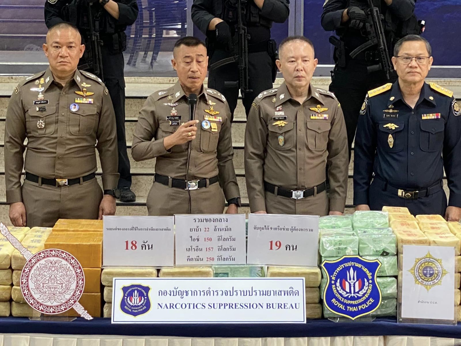 “พล.ต.ท.สำราญฯ” แถลงตำรวจปราบปรามยาเสพติด สกัดจับเครือข่ายยานรกอีก 9 เครือข่าย พบการลำเลียงลงภาคใต้จำนวนมาก ยึดยาบ้า 22 ล้านเม็ด, ไอซ์ 150 กก., เฮโรอีน 157 กก. และ คีตามีน 250 กก.