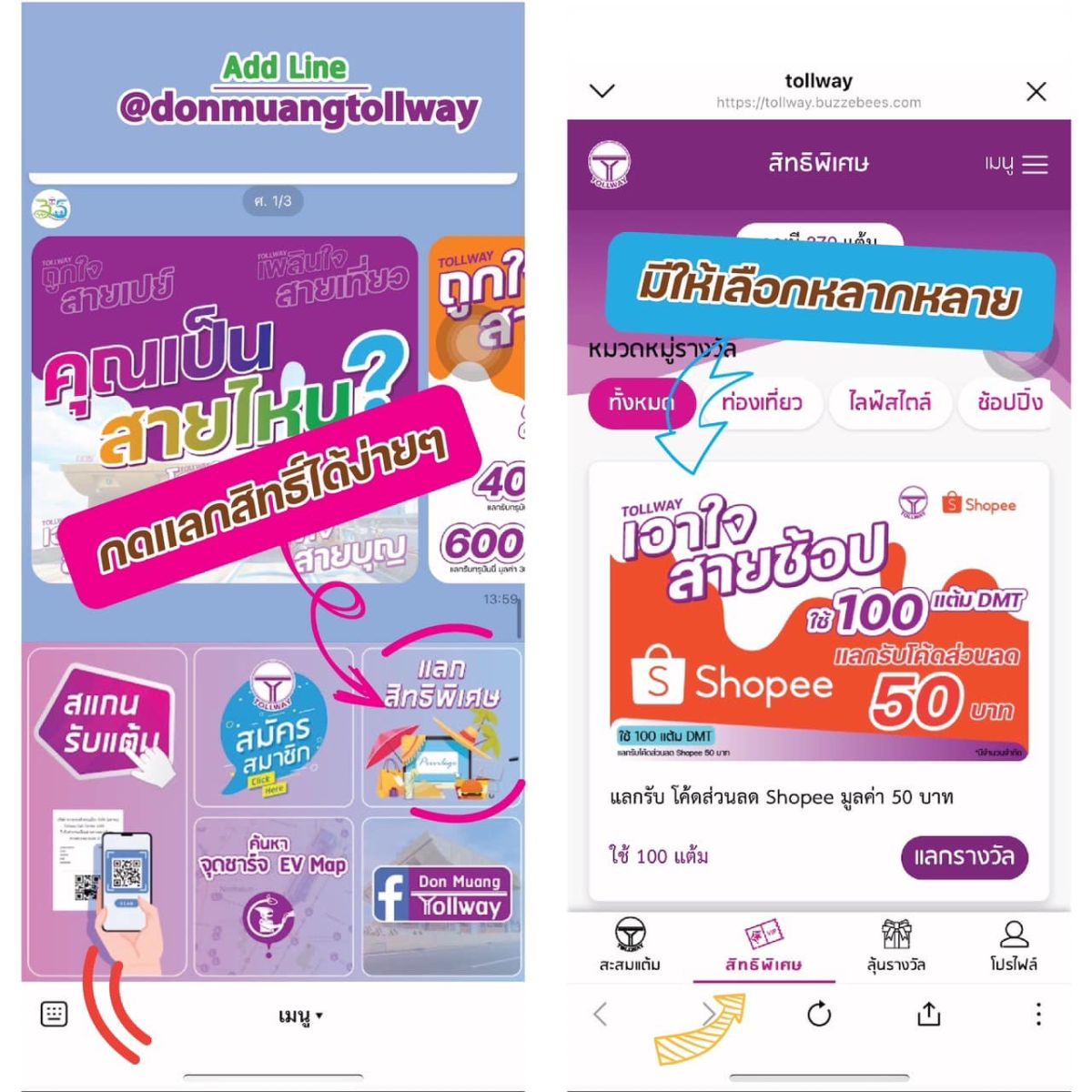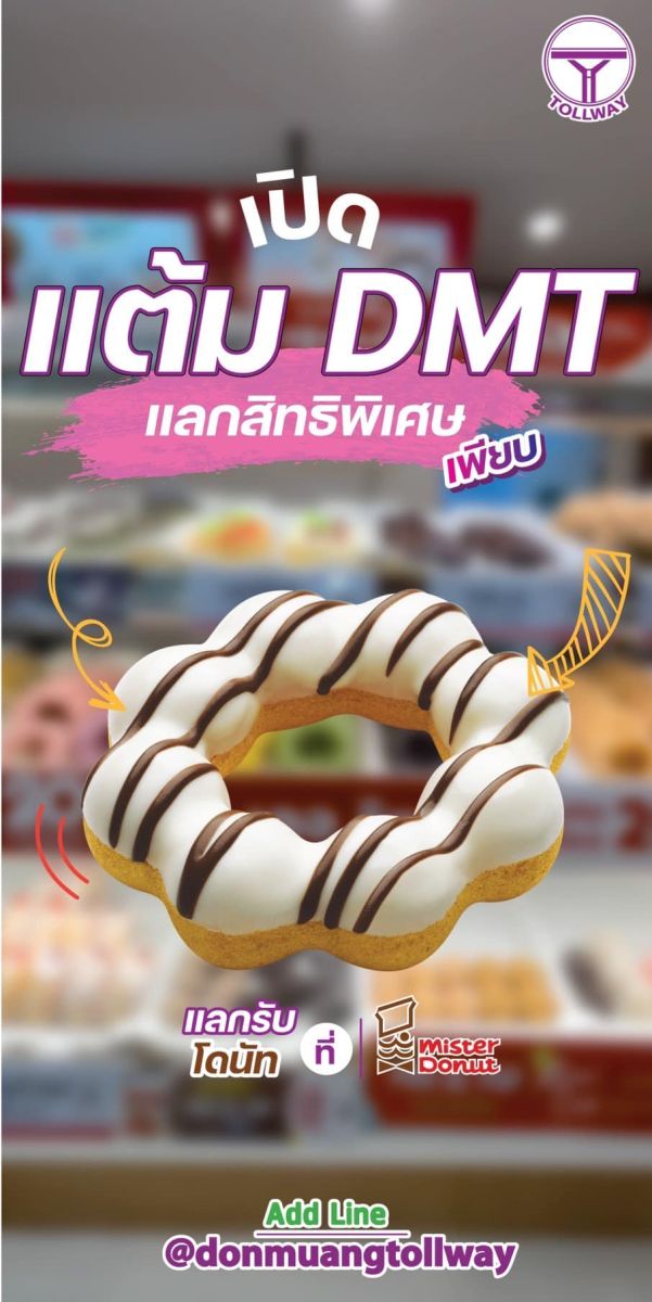 บริษัท ทางยกระดับดอนเมือง จำกัด (มหาชน) หรือ DMT เอาใจผู้ใช้ทาง ไม่ว่าจะเป็นสายไหน ก็ใช้แต้ม DMT รับสิทธิ์ได้ทันที โดยผู้ใช้ทางสามารถรับสิทธิ์ได้ง่ายๆ เพียงสมัครสมาชิก LINE Official Account : @donmuangtollway หรือคลิก https://liff.line.me/1657091517-LxGaegy4?target_page=reward สะสมแต้มได้ทุกครั้ง เมื่อชำระค่าผ่านทางและขอใบรับค่าธรรมเนียมผ่านทางหลวงพิเศษมา สแกน QR หรือผูกบัตร M-Pass / Easy Pass กับบัญชีสมาชิก จะสะสมแต้มอัตโนมัติ 2 เท่า